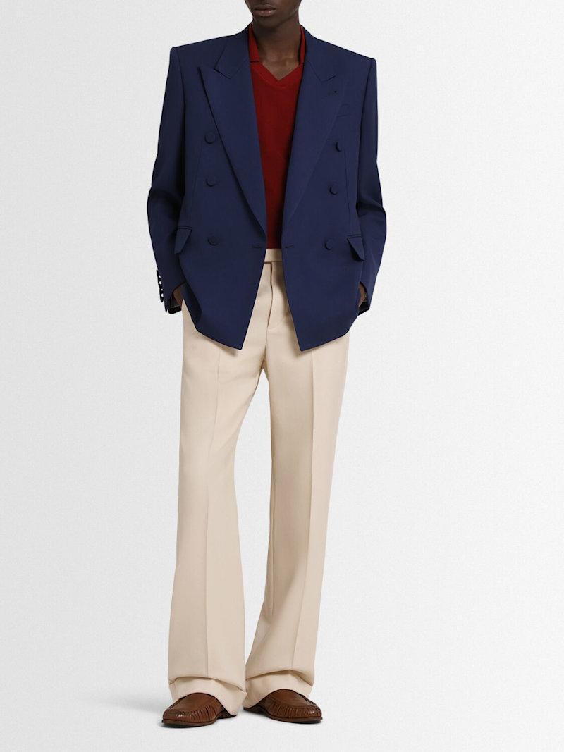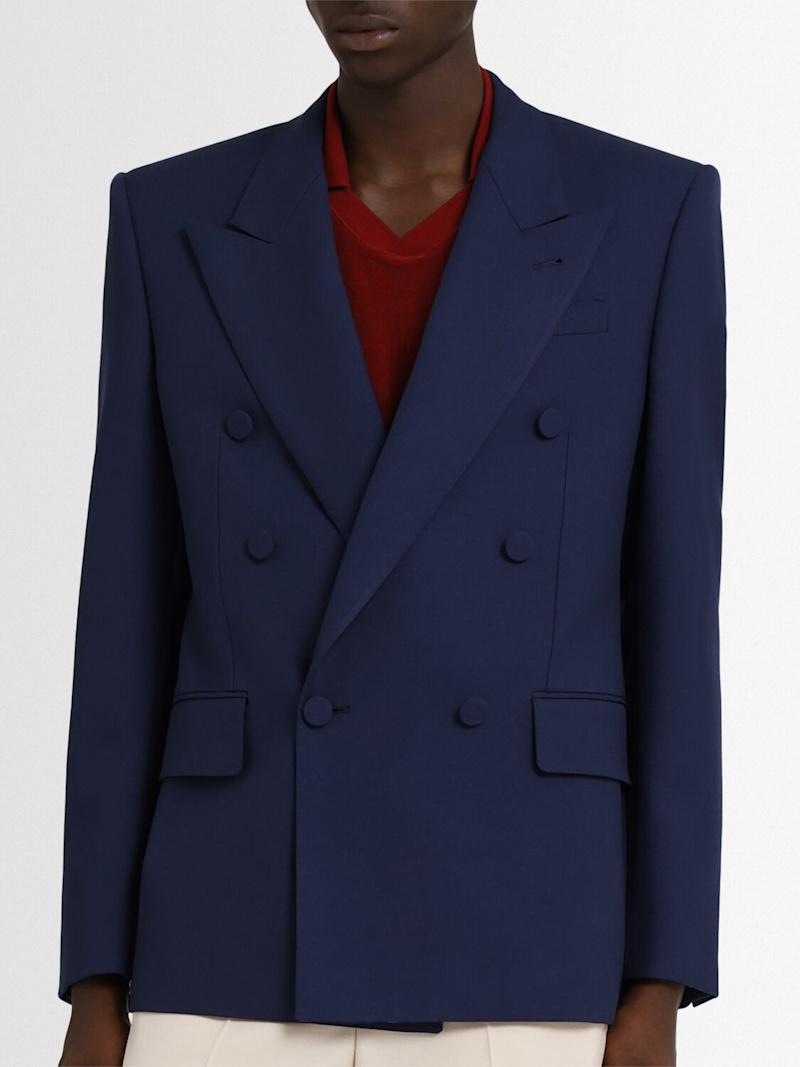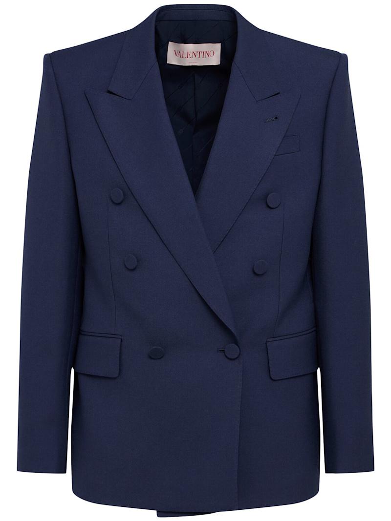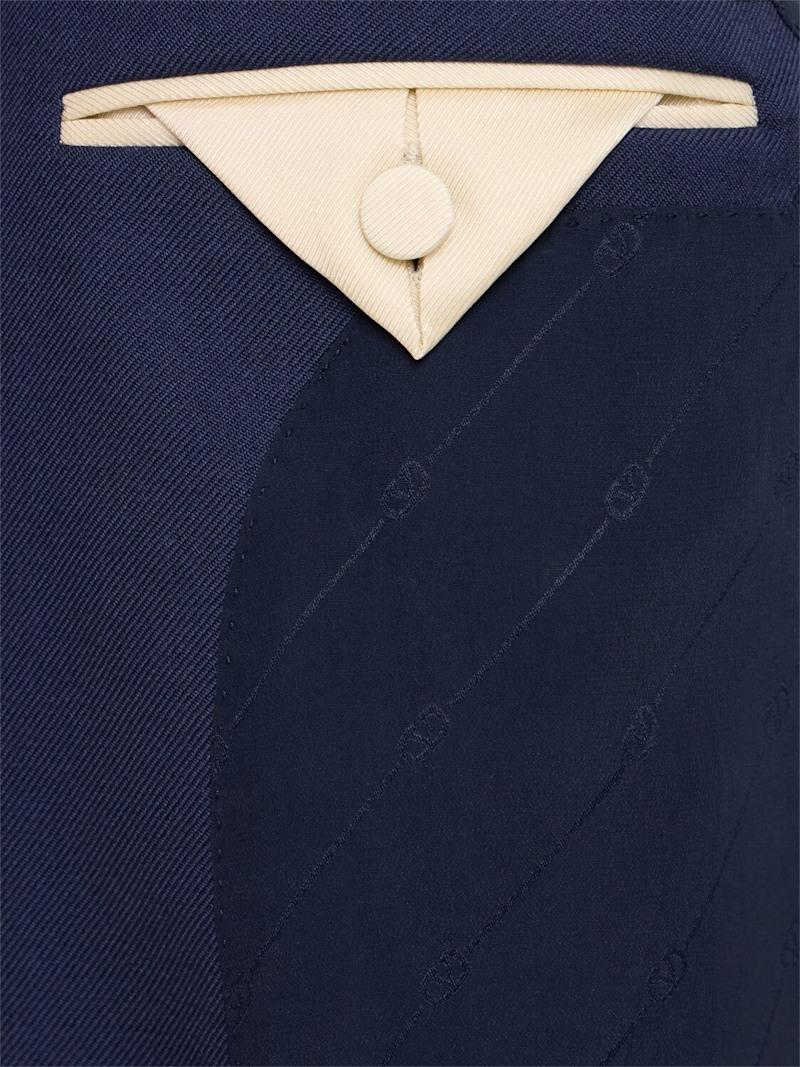 羊毛华达呢夹克 - 海军蓝 - 男士 - Valentino - 正面纽扣开合.