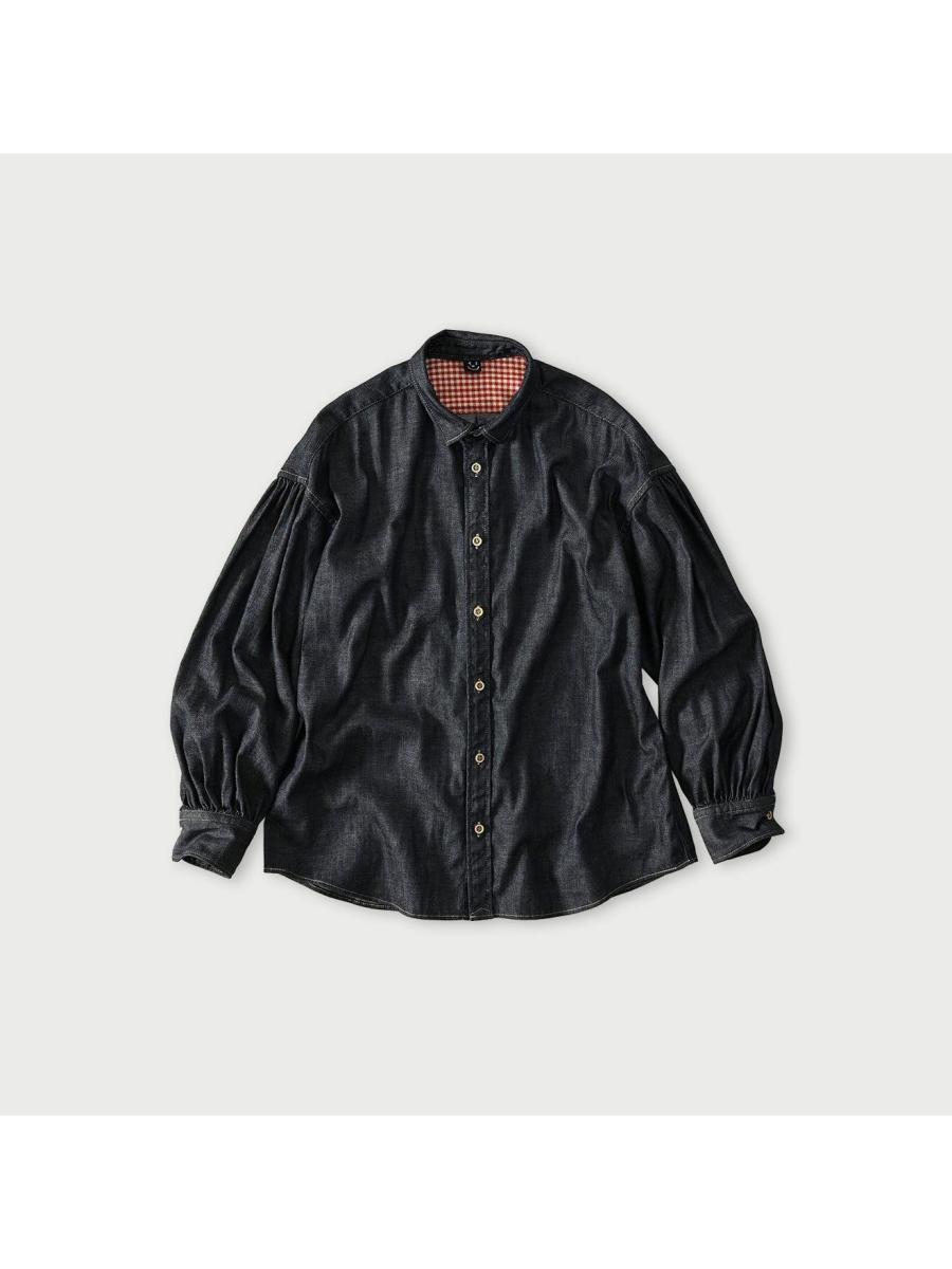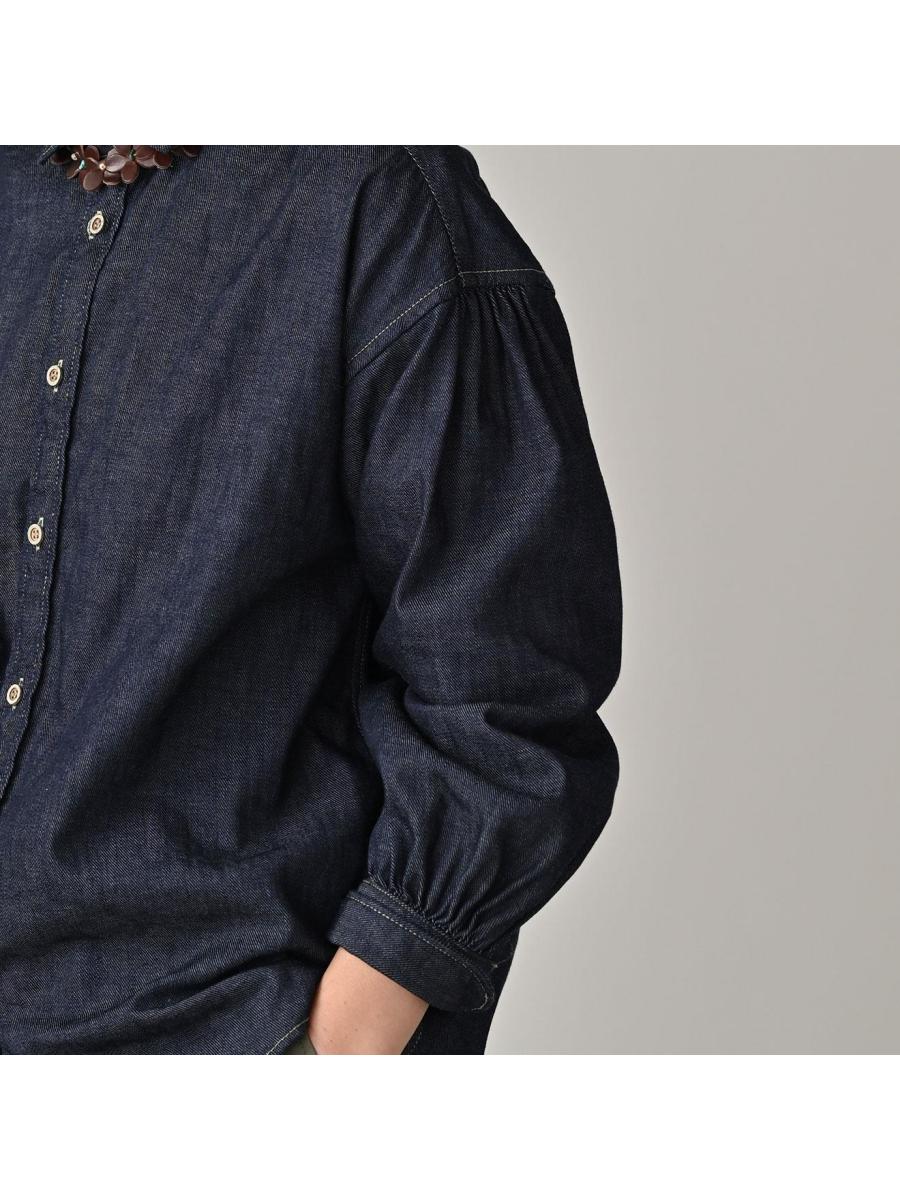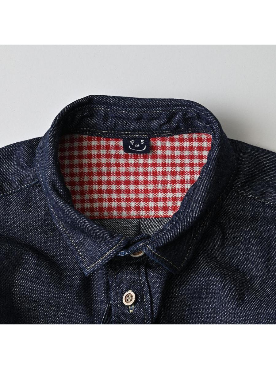 45プチデニムのちび衿長袖クッペシャツ(濃)