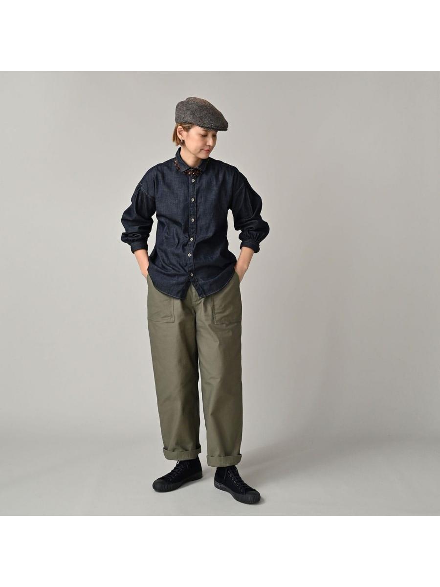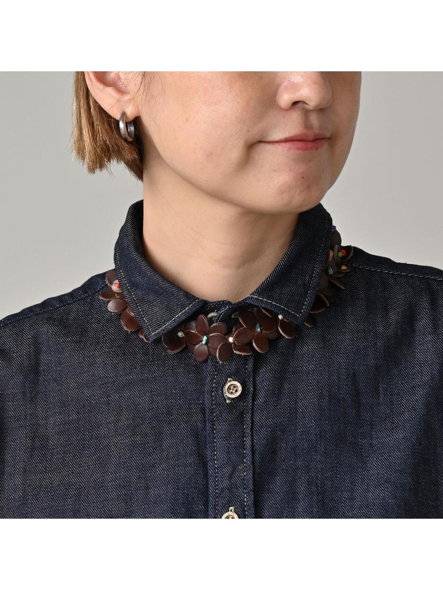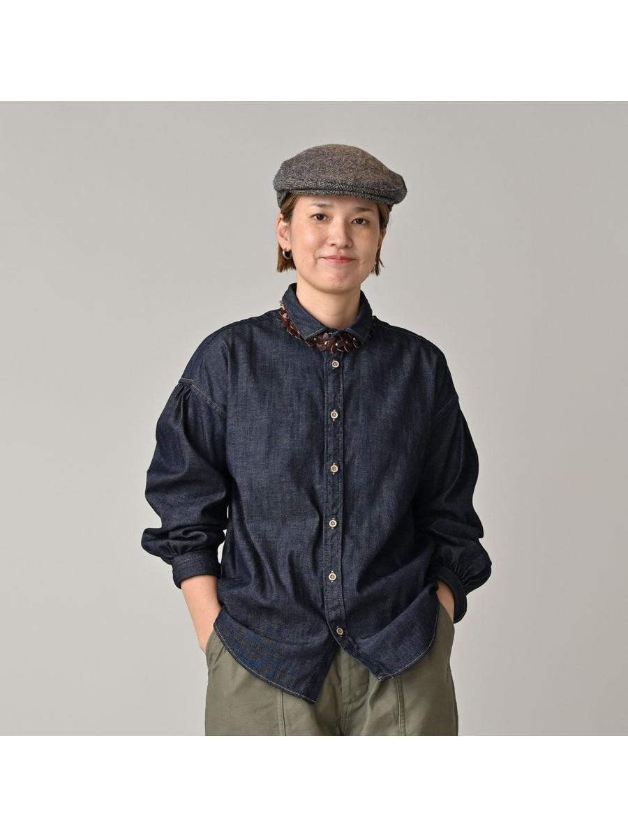 45プチデニムのちび衿長袖クッペシャツ(濃)