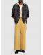 棉质阔腿工装裤 - 黄色 - 男士 - After Pray - 正面纽扣和隐藏式拉链开合.