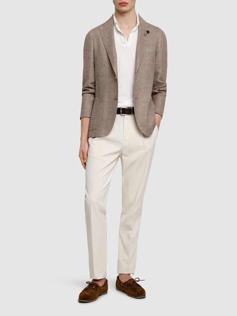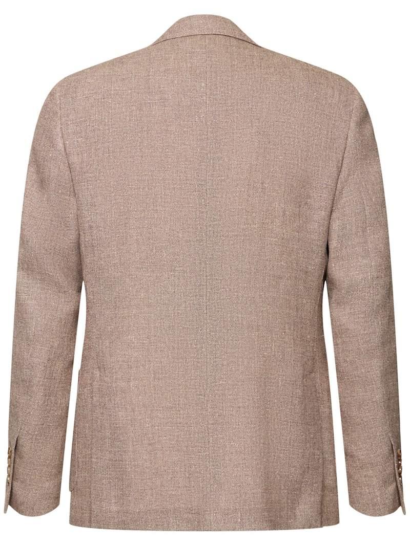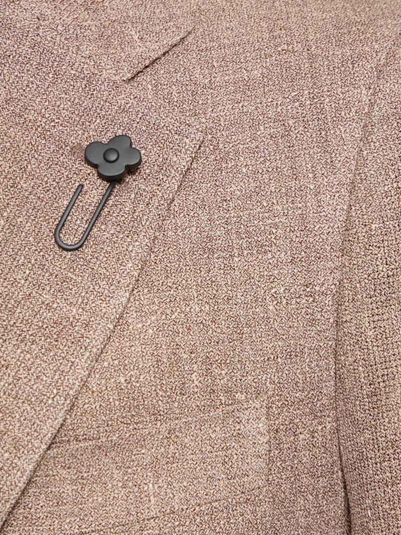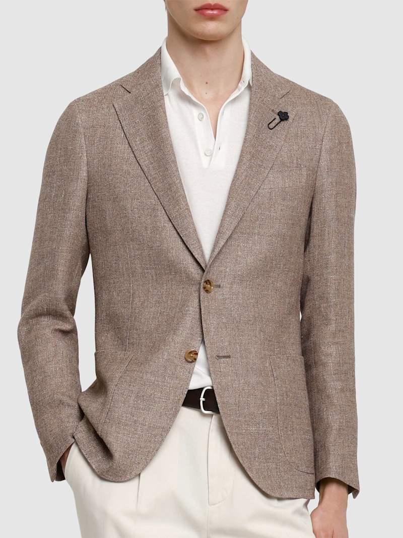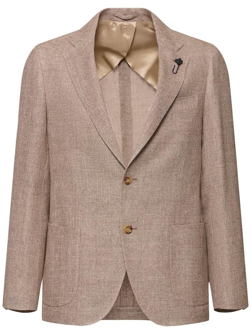 羊毛&亚麻单排扣西服夹克 - 棕色 - 男士 - Lardini - 正面纽扣开合.