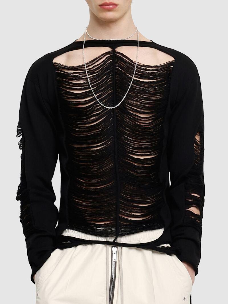 LS top毛衣 - 黑色 - 男士 - Rick Owens - 正面磨损幅面