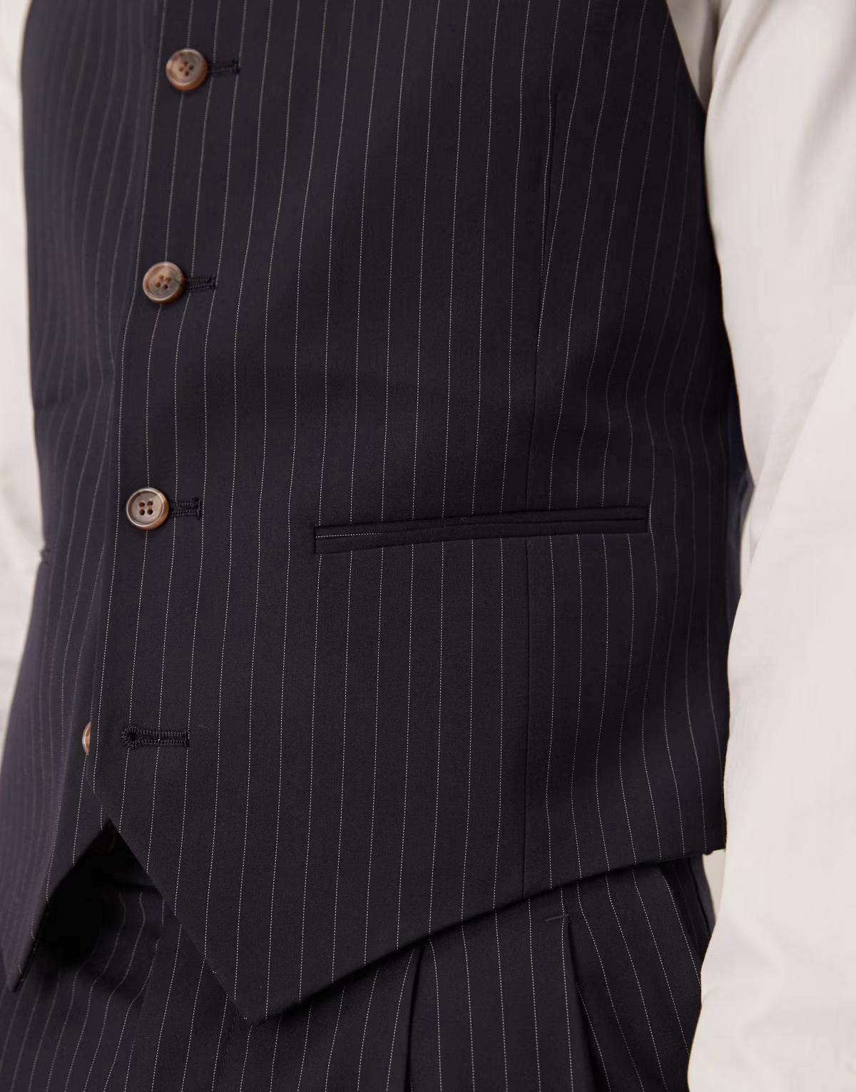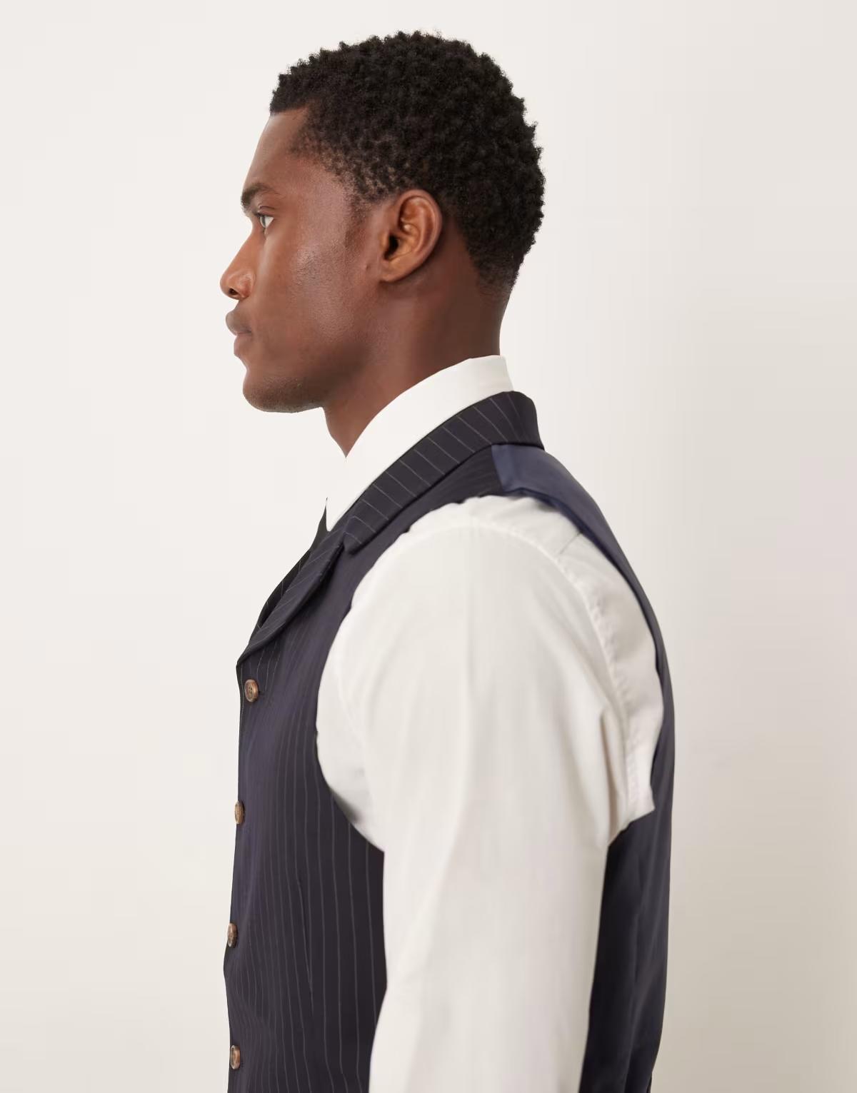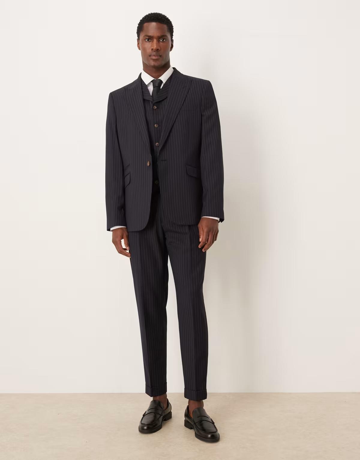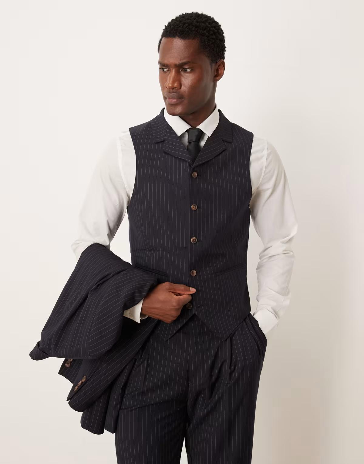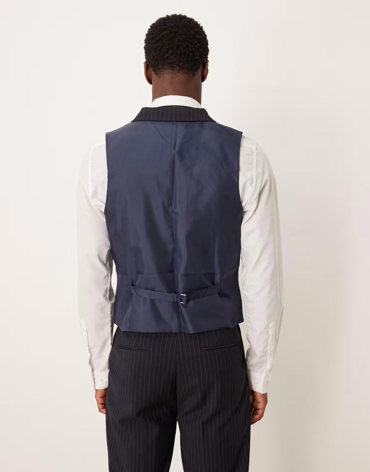 ASOS DESIGN slim suit waistcoat in navy pinstripe