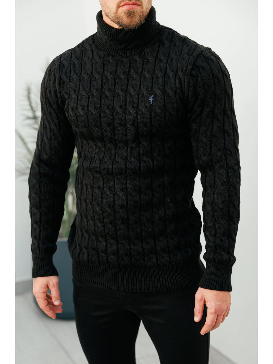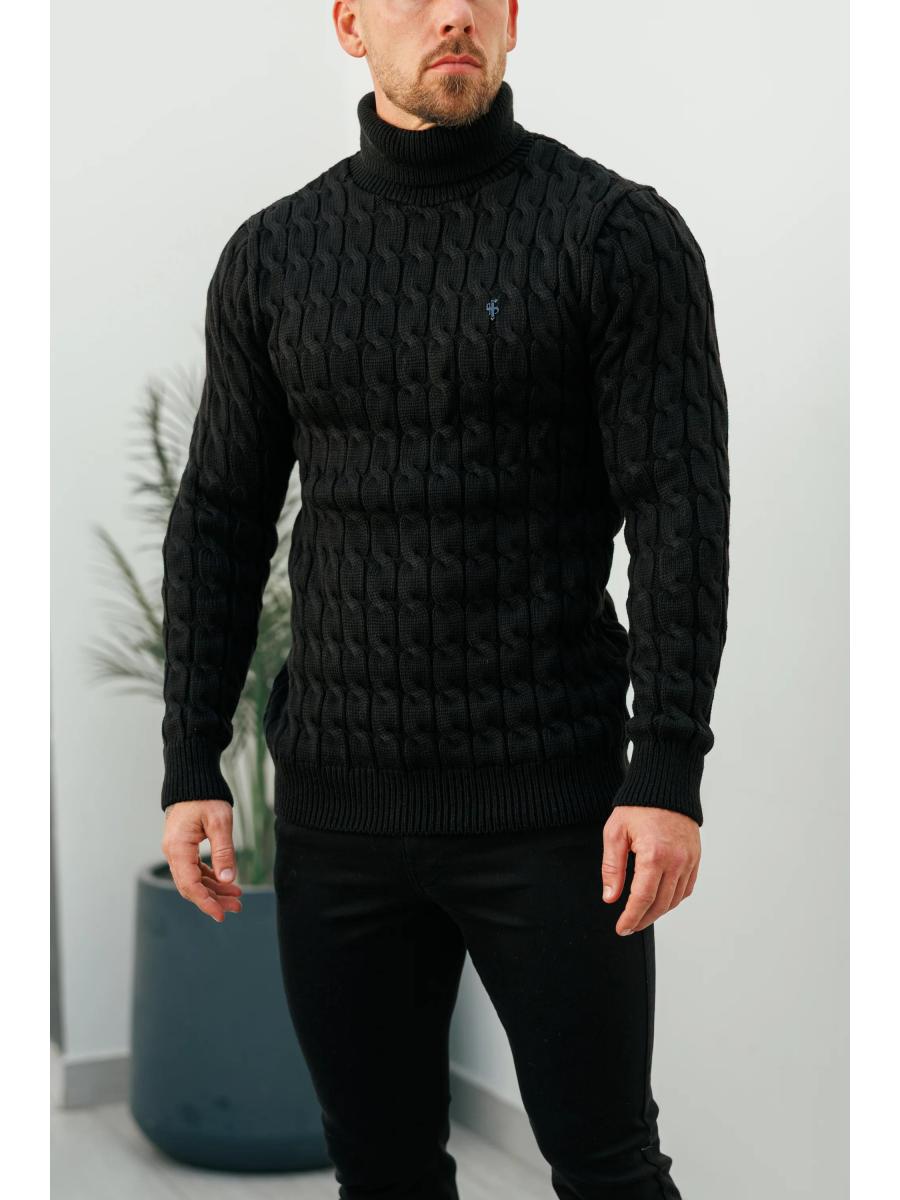 Father Sons Link Weave Knit Black Roll Neck Jumper - FSJ101