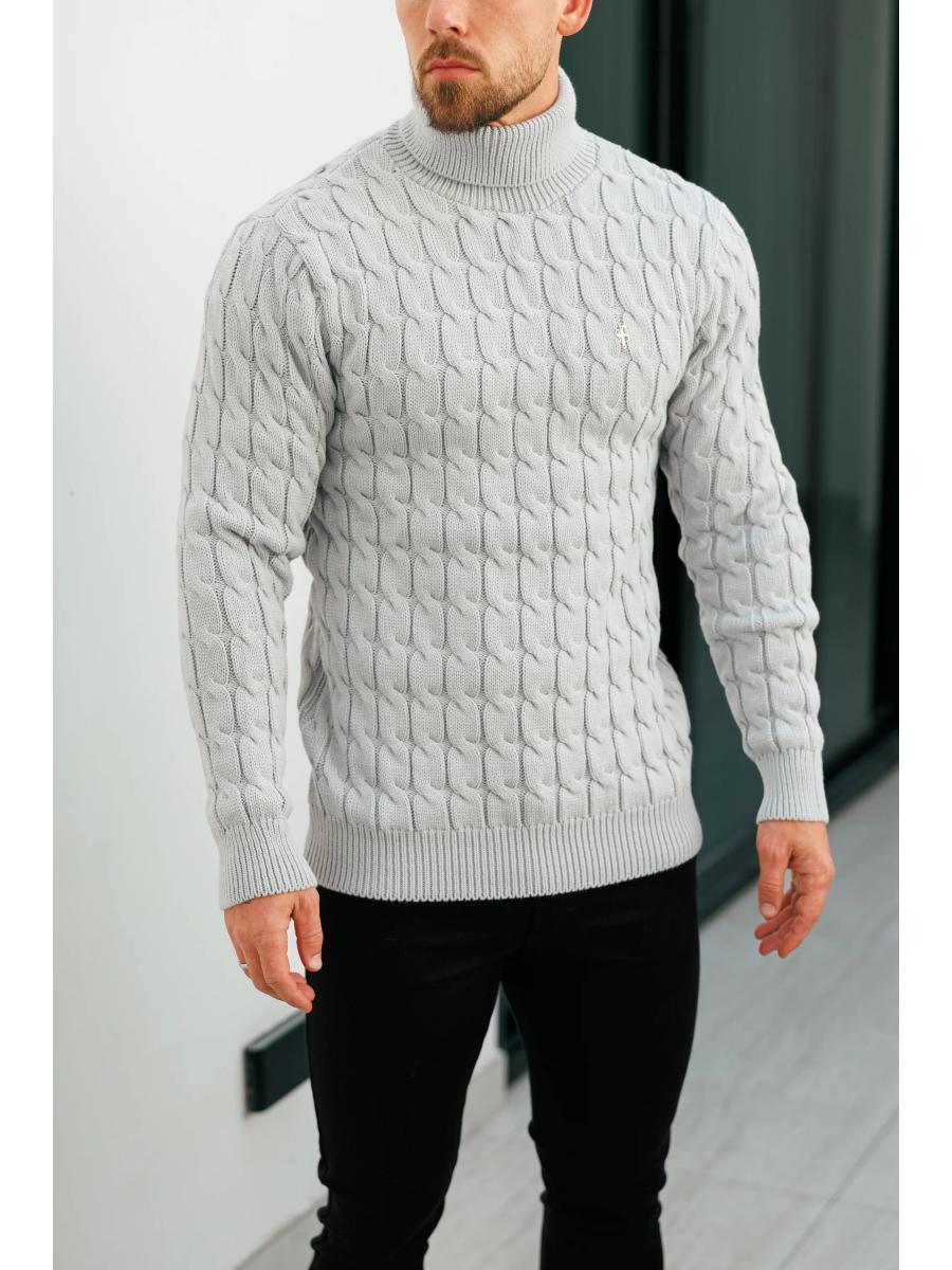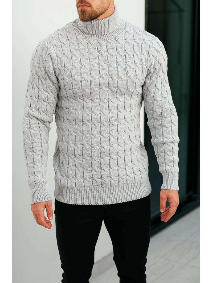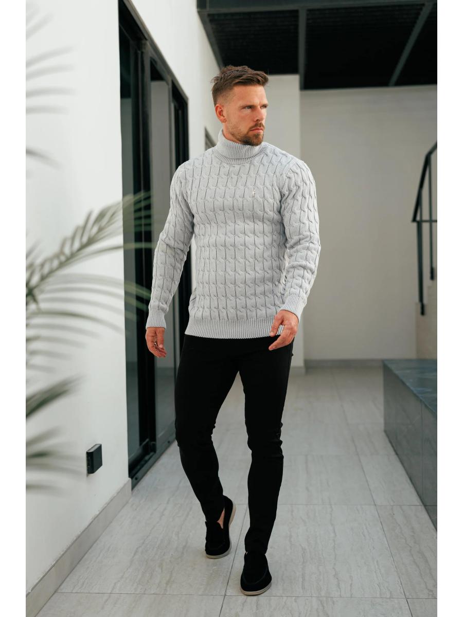 Father Sons Link Weave Knit Cop Grey Roll Neck Jumper - FSJ104