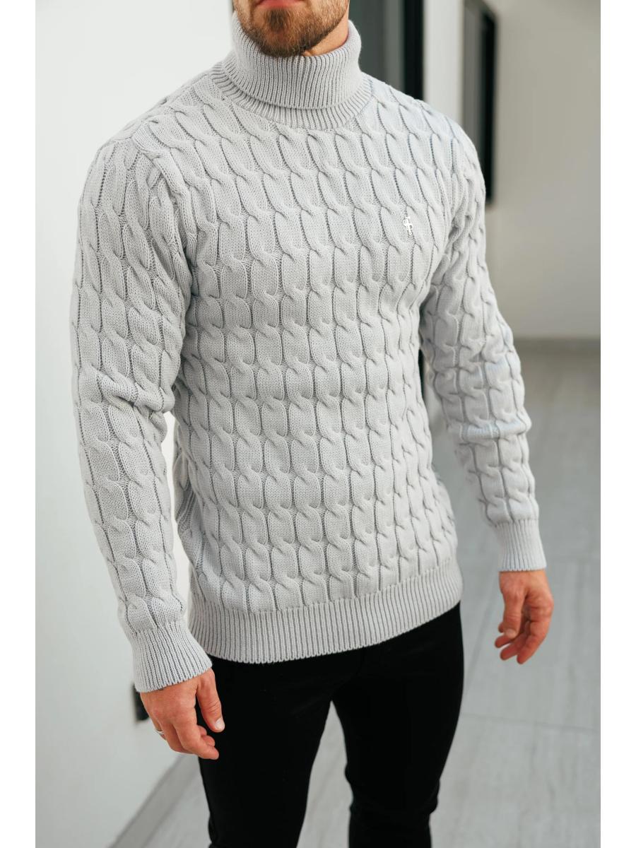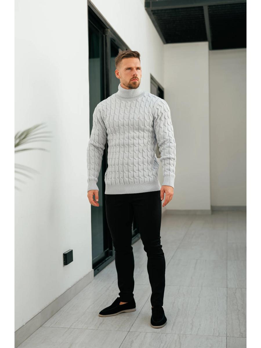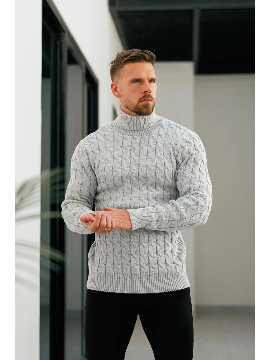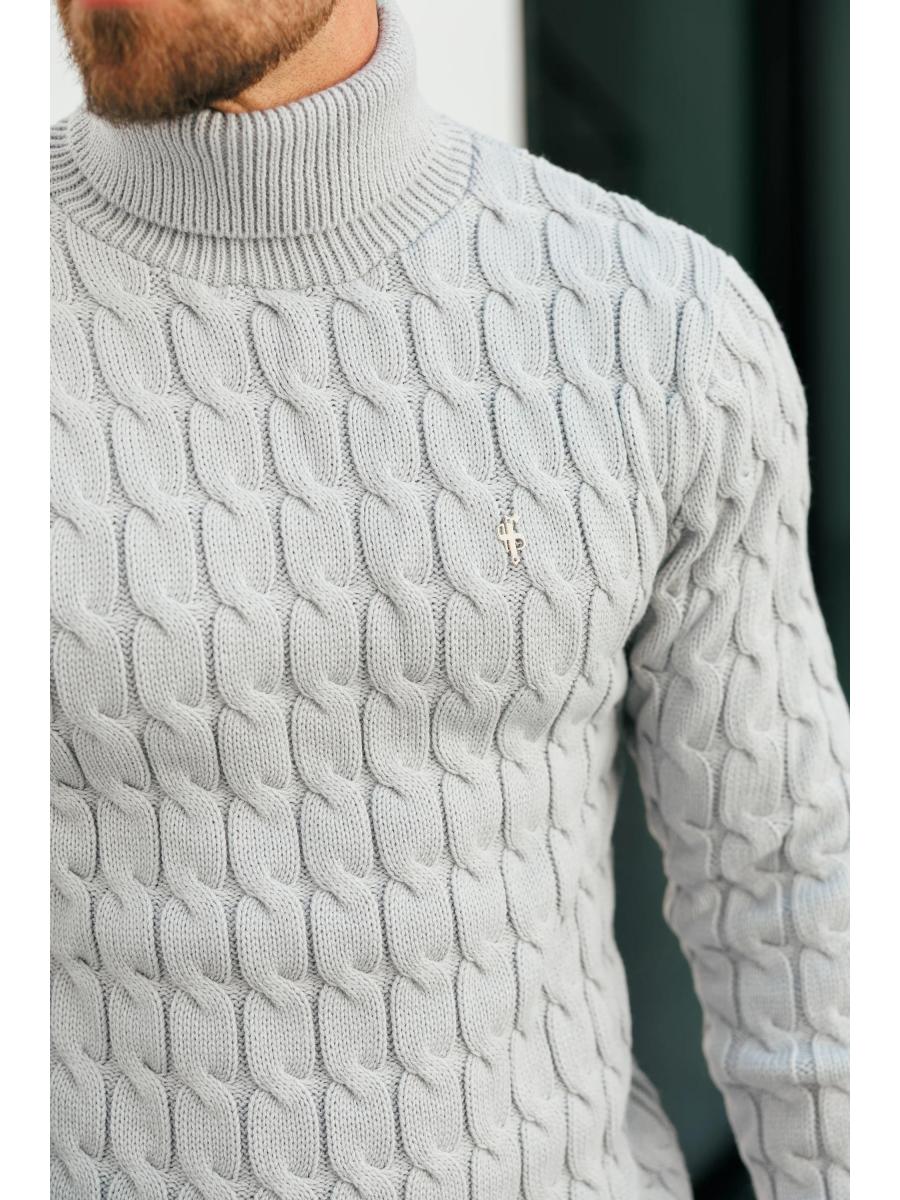 Father Sons Link Weave Knit Cop Grey Roll Neck Jumper - FSJ104