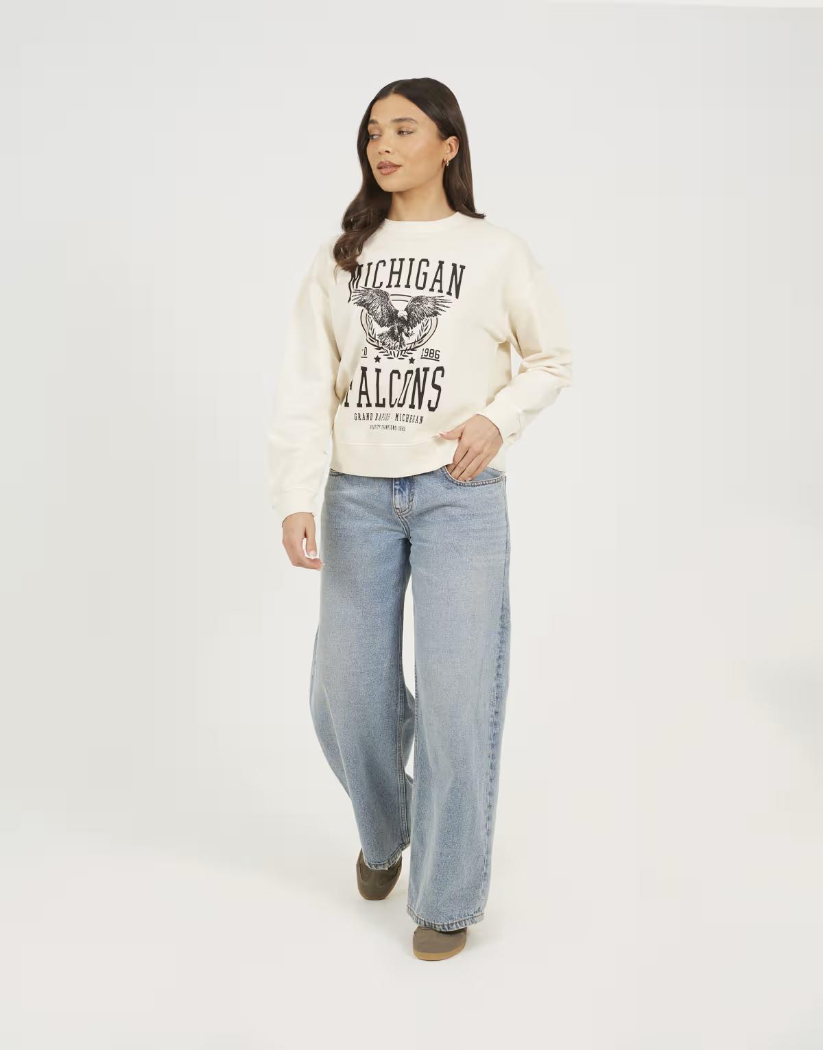 Brave Soul Acid wash graphic print sweatshirt in beige