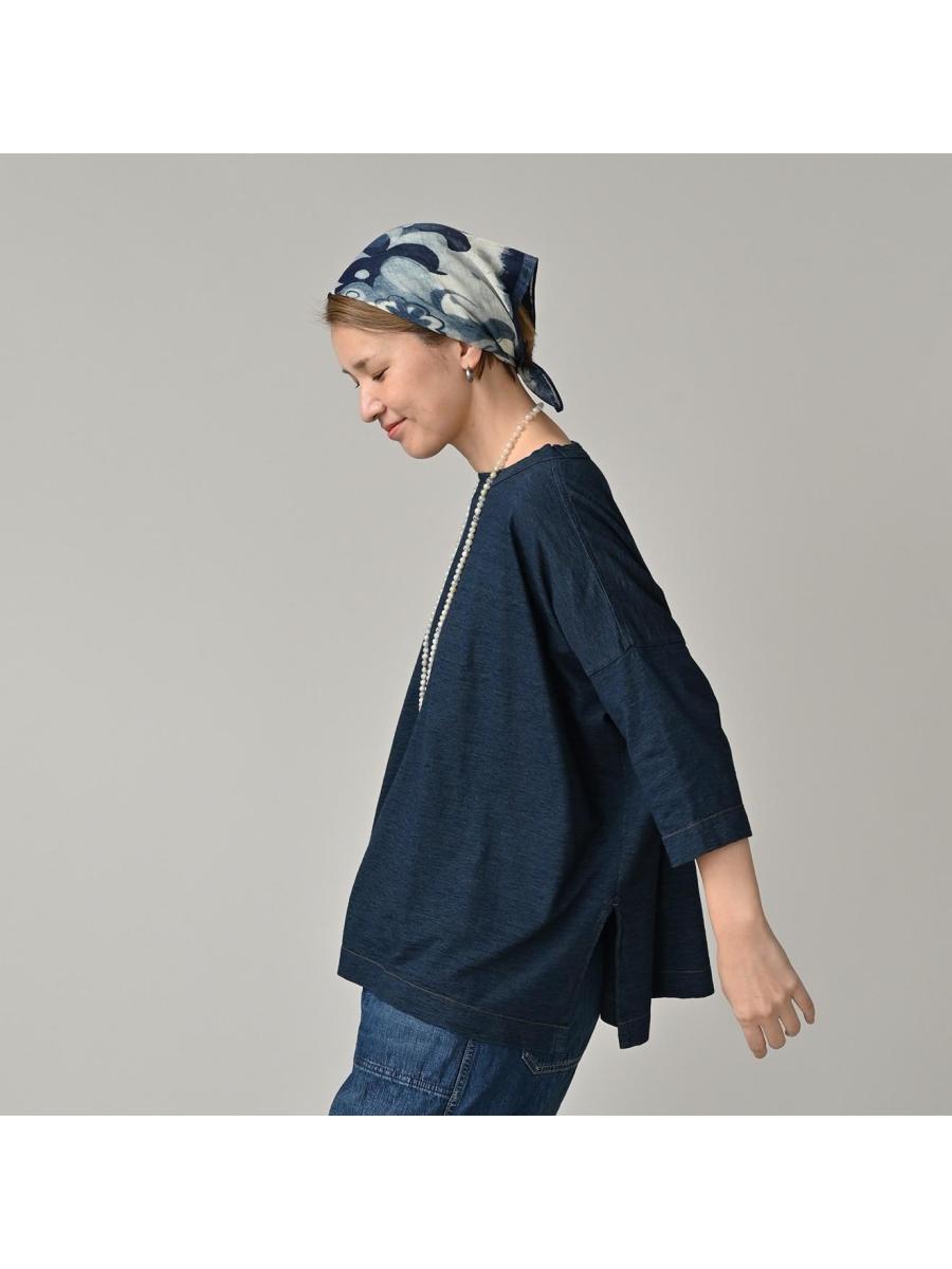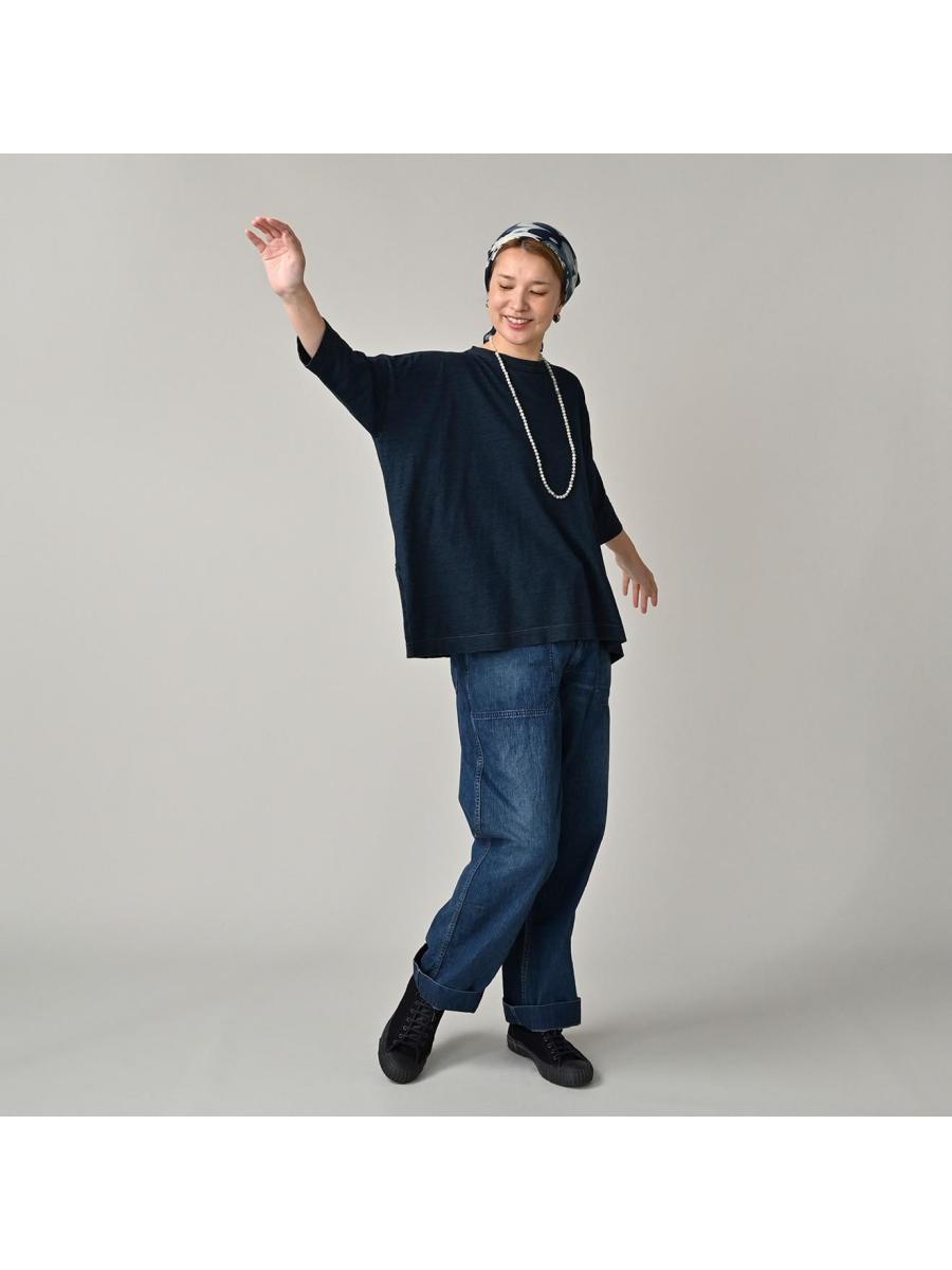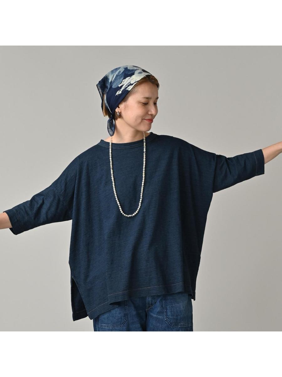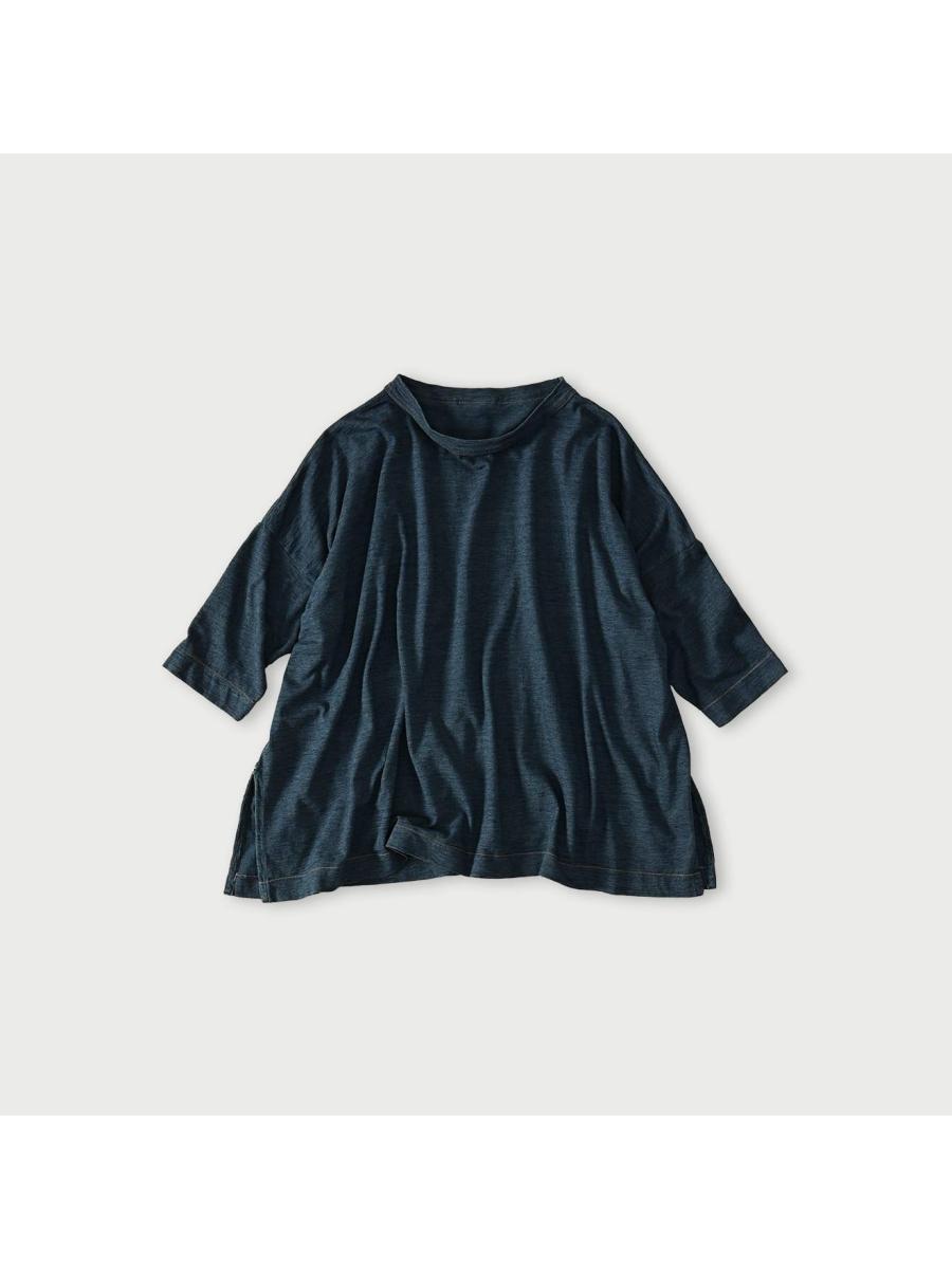 天竺のビッグスリットTシャツ(インディゴ 重)
