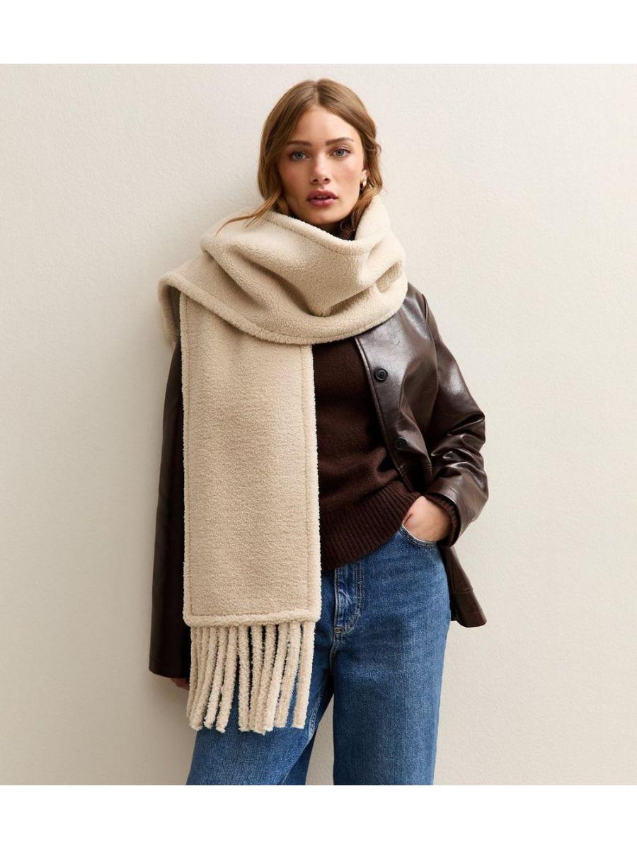 Cream Borg Textured Scarf