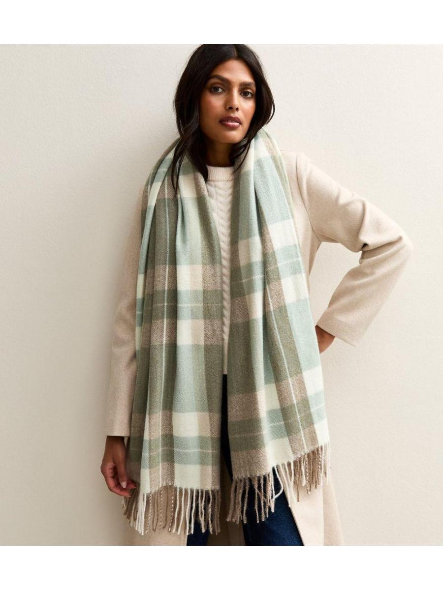 Green Midweight Checked Scarf
