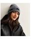 Grey Bow Appliqued Ribbed Knit Beanie Hat