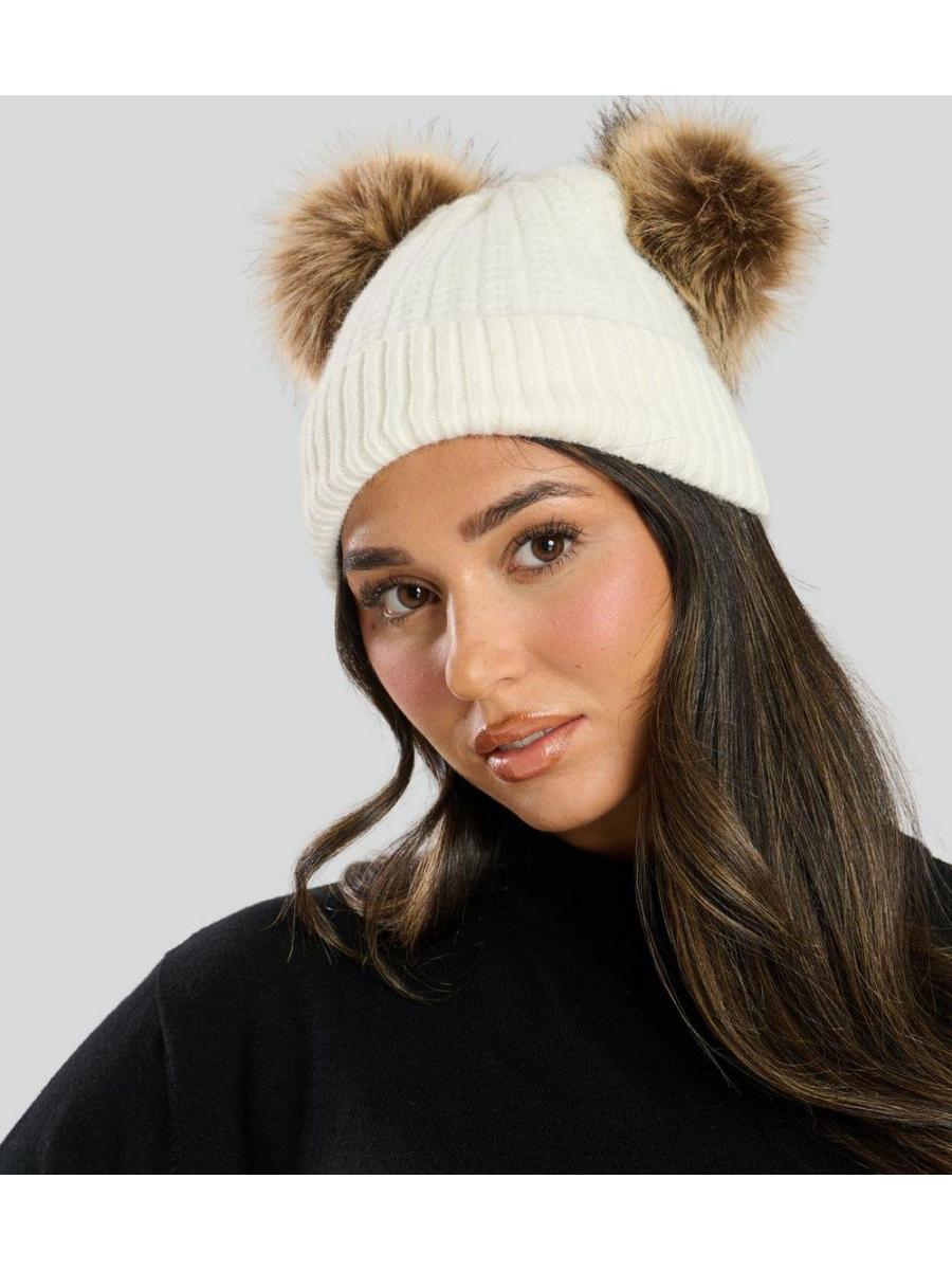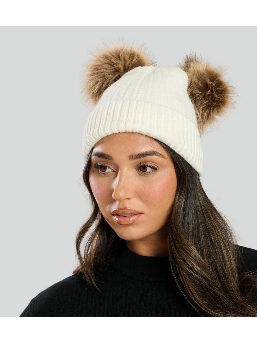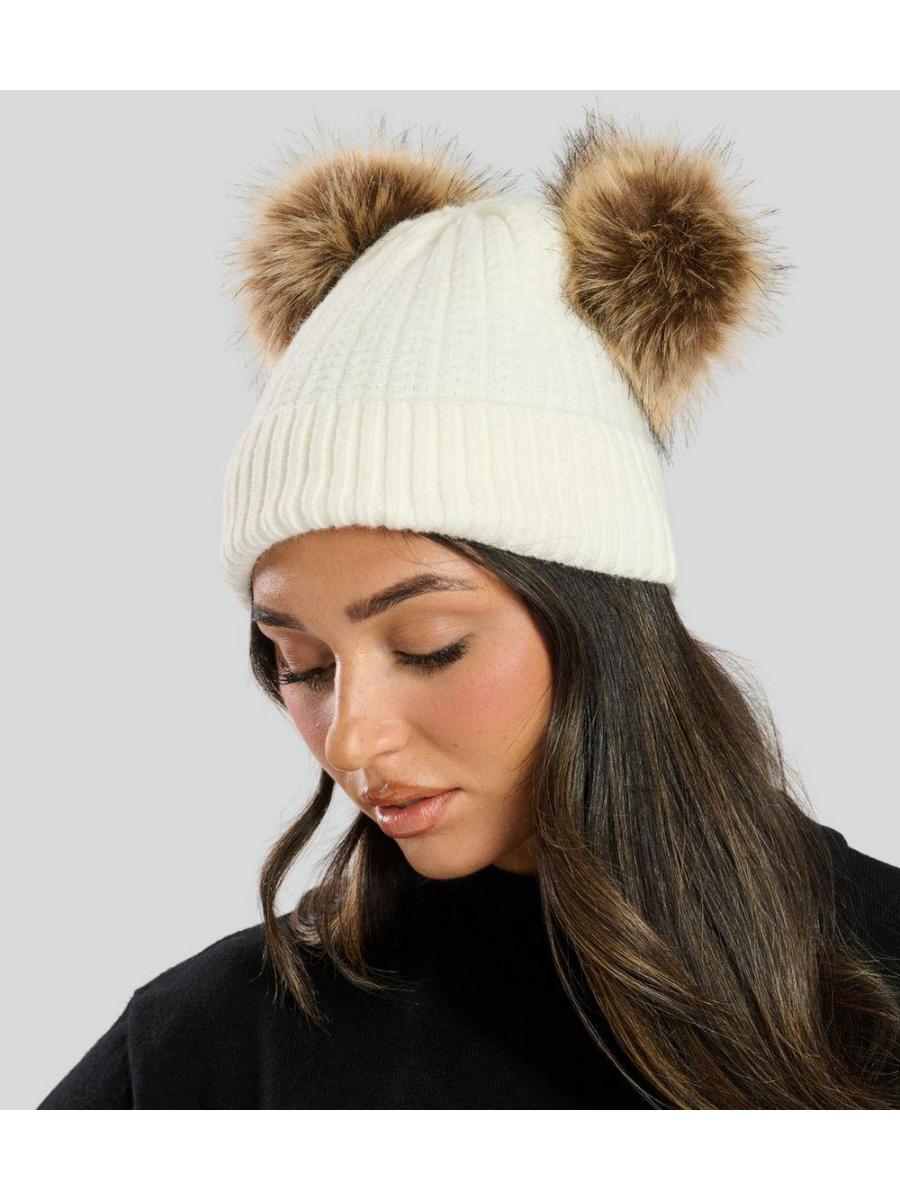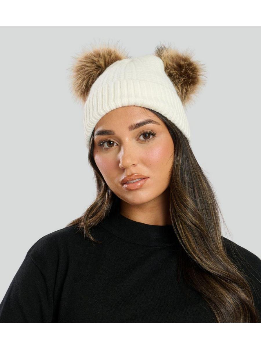 South Beach Cream Double Pom Pom Beanie