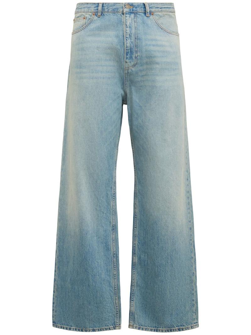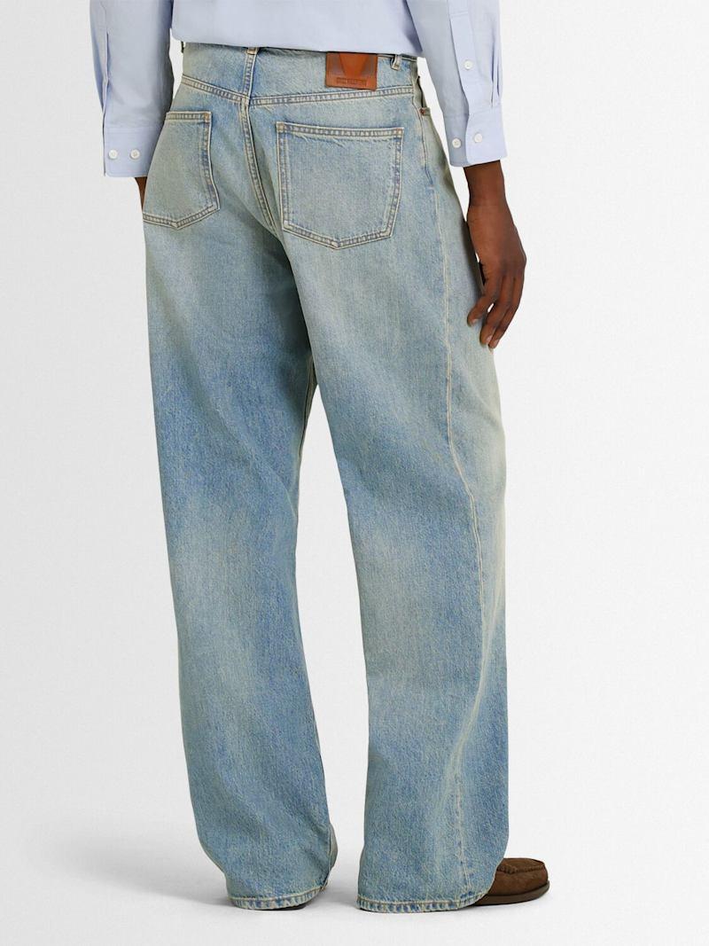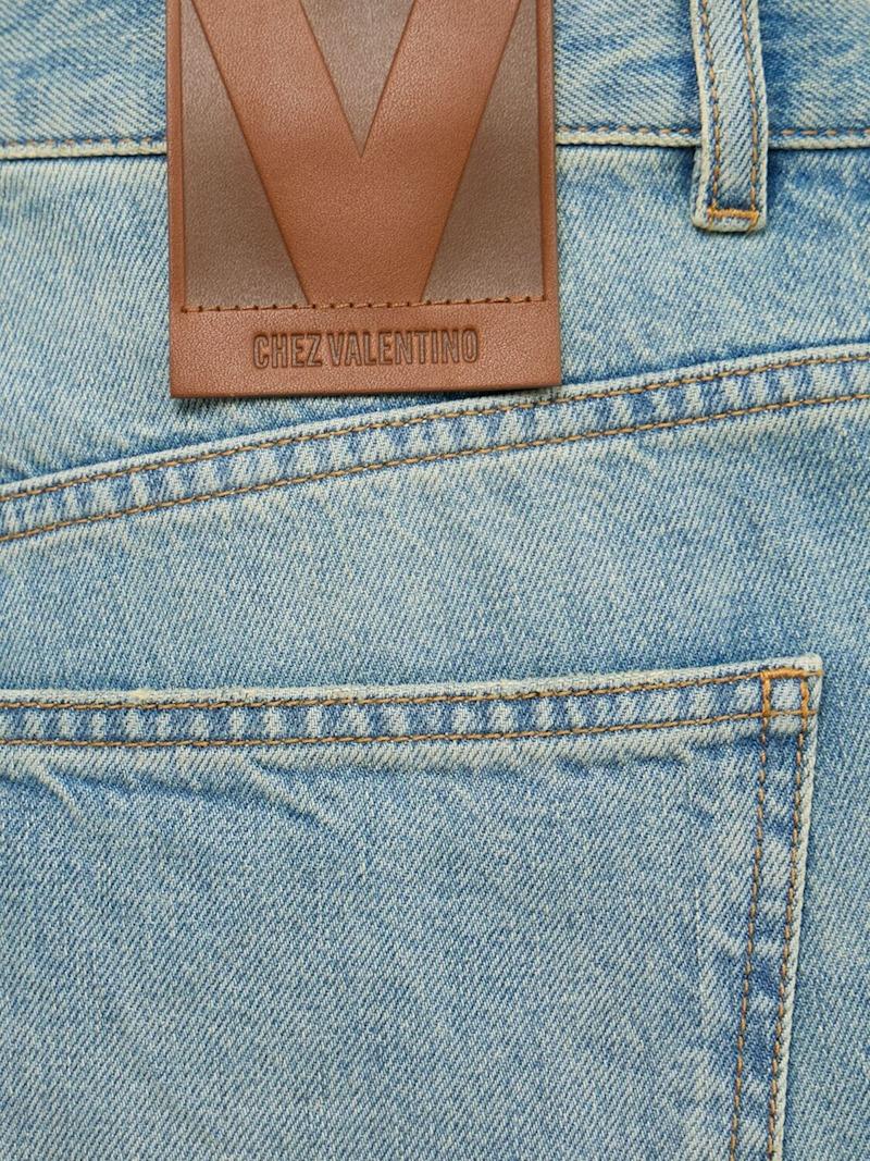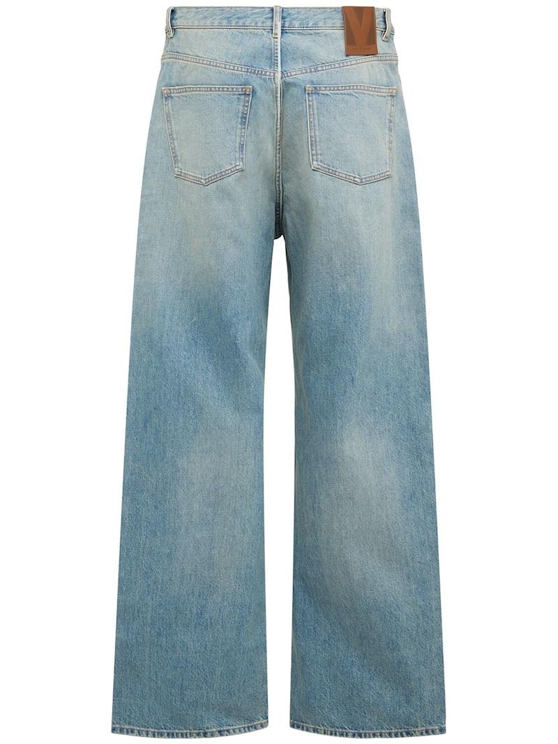 洗水棉质牛仔裤 - 蓝色 - 男士 - Valentino - 正面纽扣和隐藏式拉链开合.