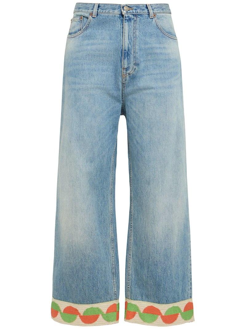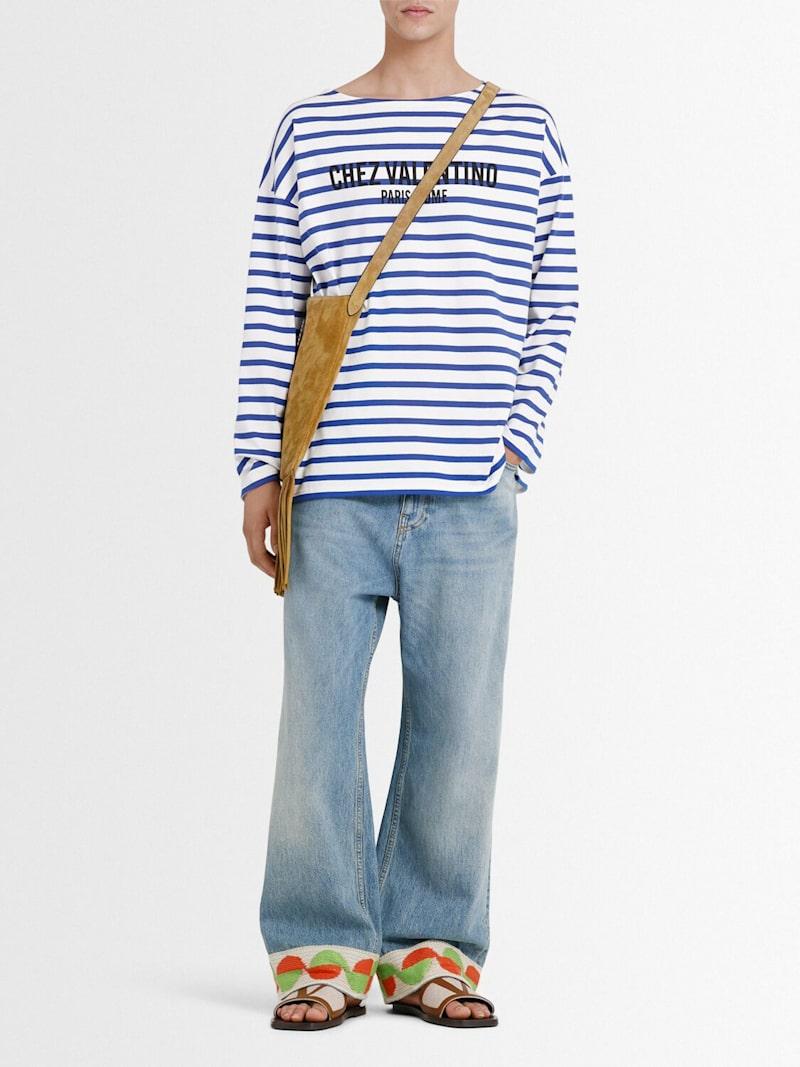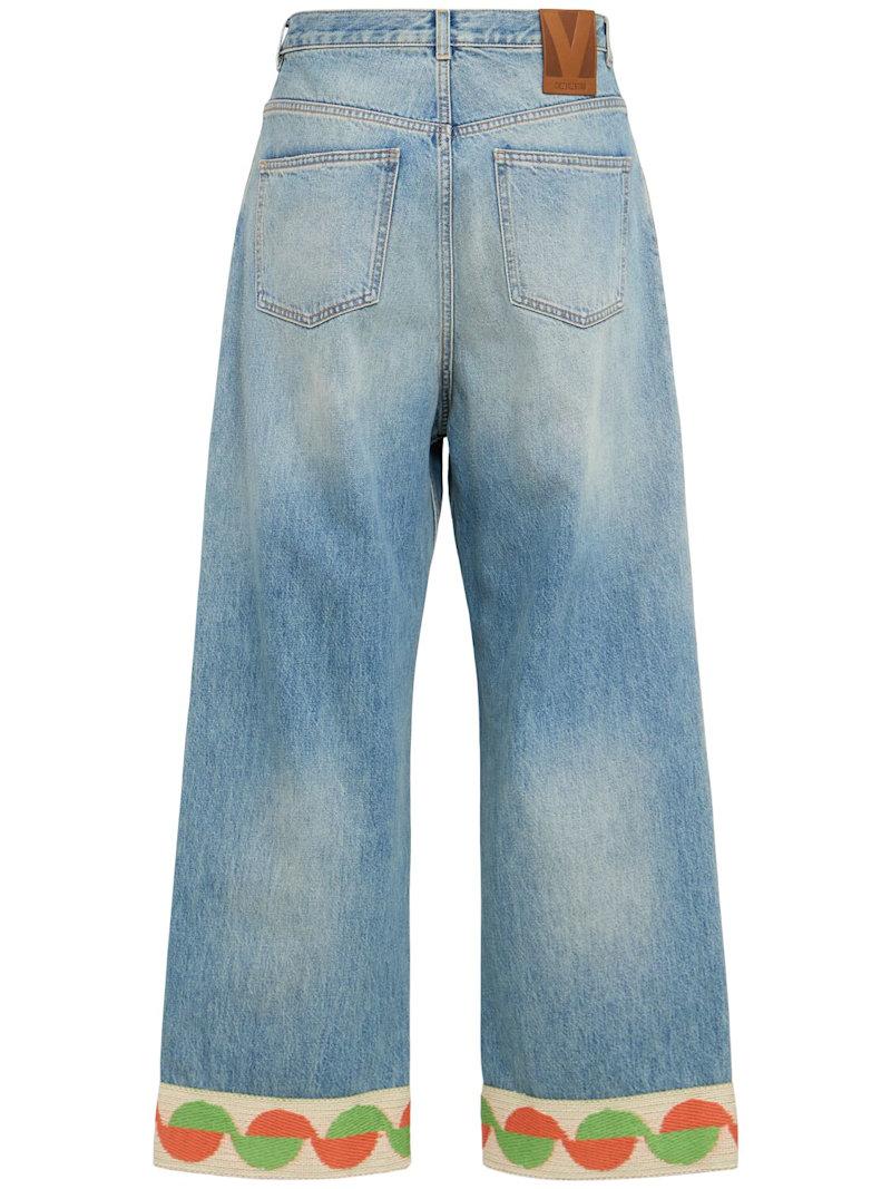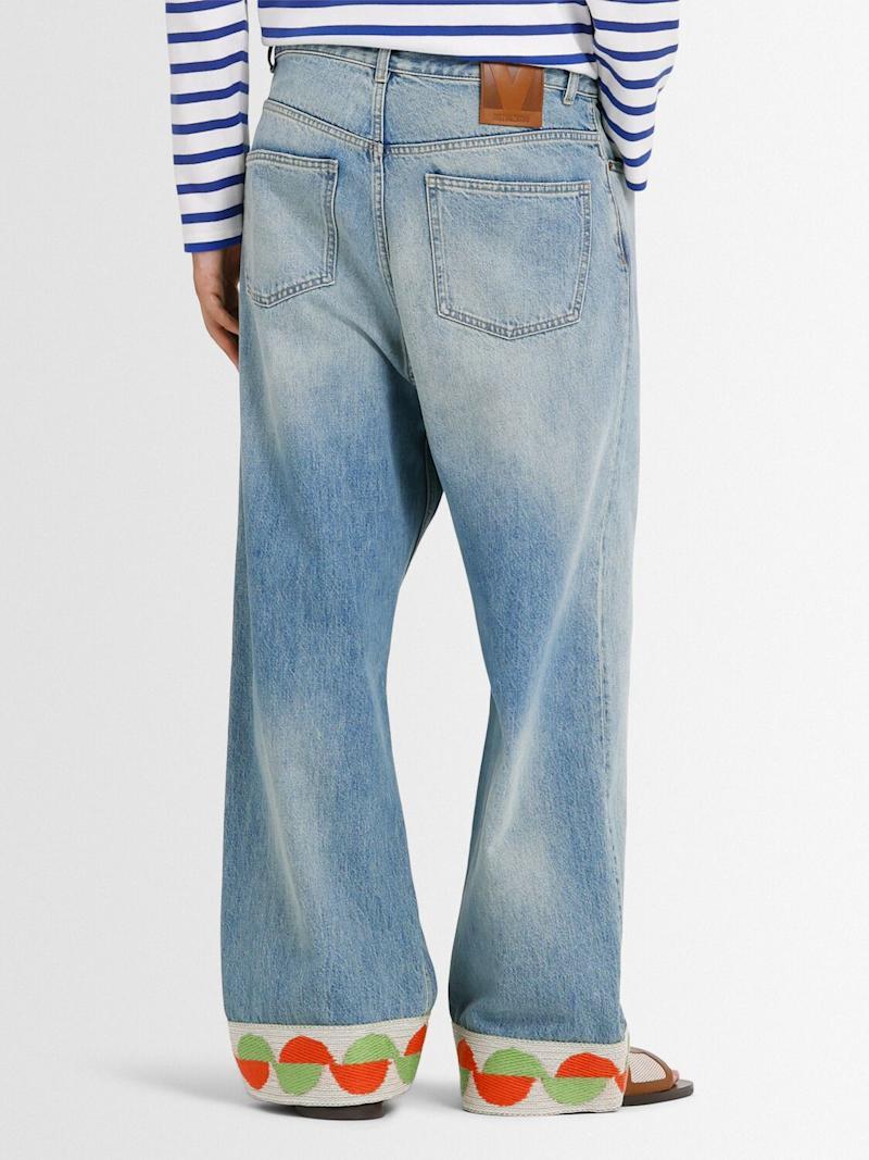 直筒牛仔裤 - 中蓝 - 男士 - Valentino - 正面纽扣和隐藏式拉链开合.