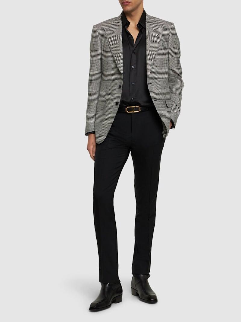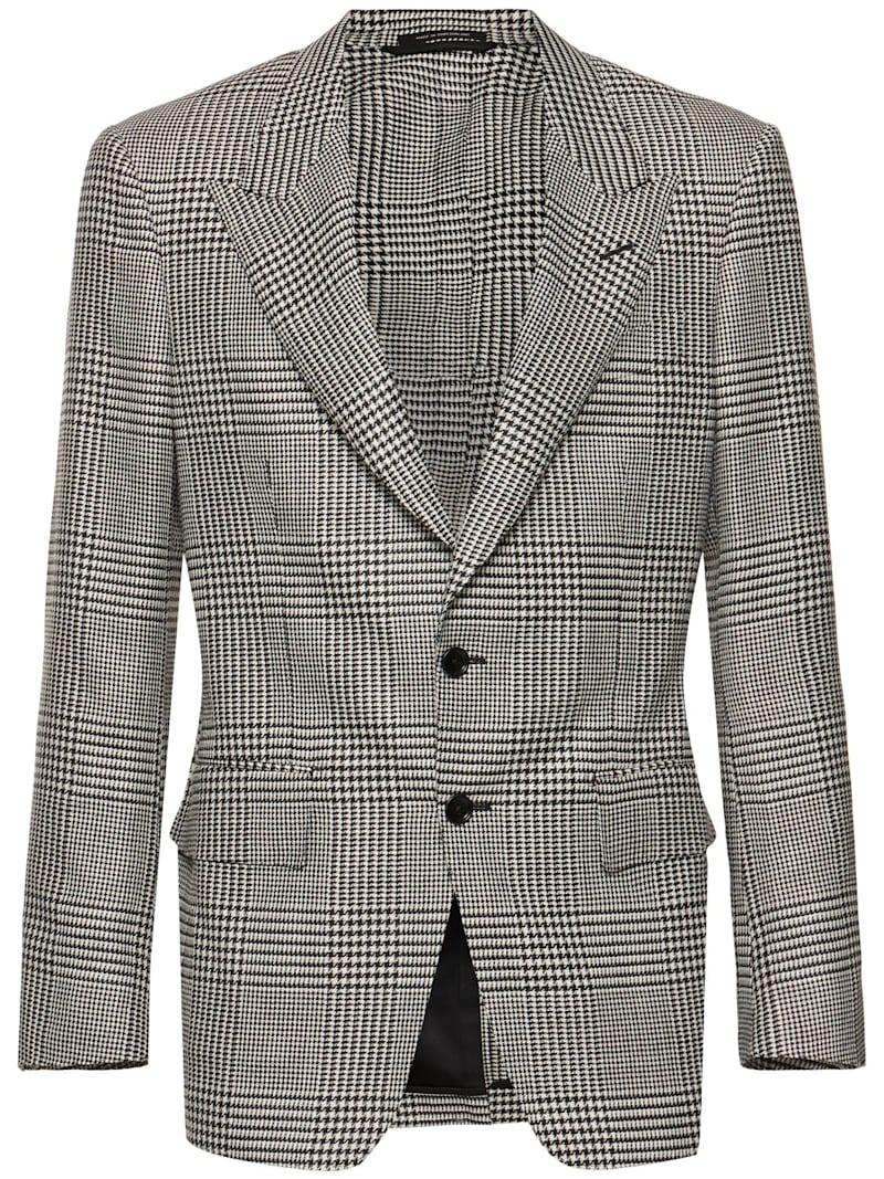 Graphic Pow谢尔顿羊毛混纺夹克 - 黑色/白色 - 男士 - Tom Ford - 正面纽扣开合.