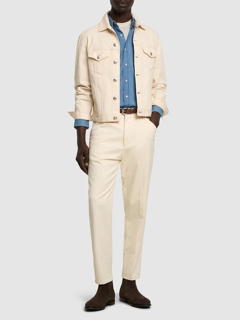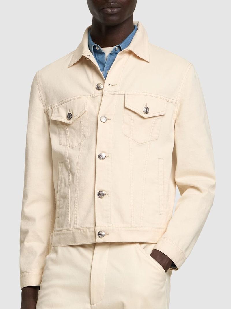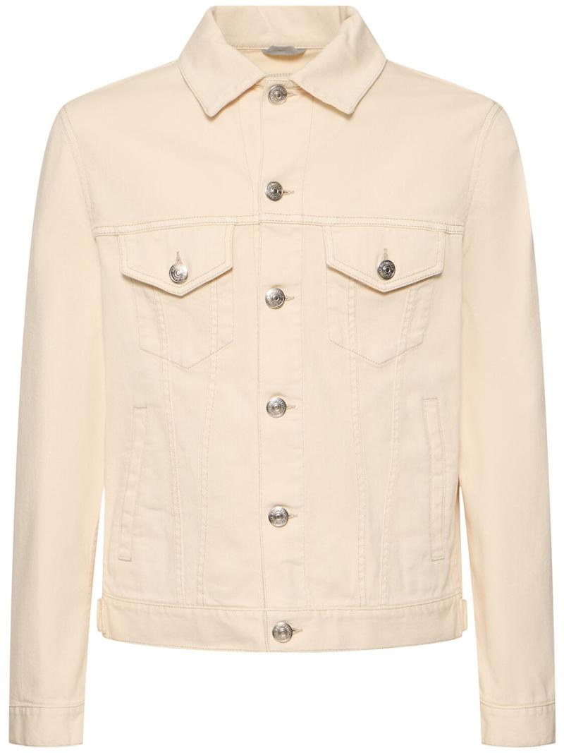 混棉牛仔夹克 - 奶油色 - 男士 - Brunello Cucinelli - 正面纽扣开合.