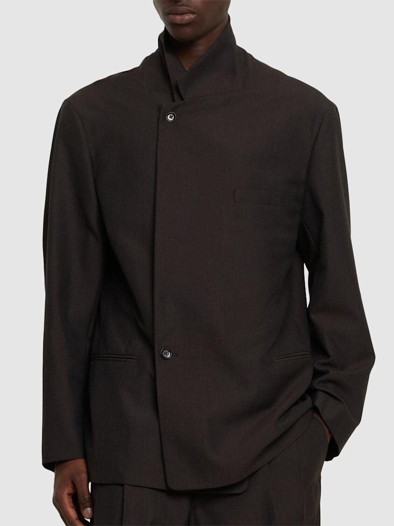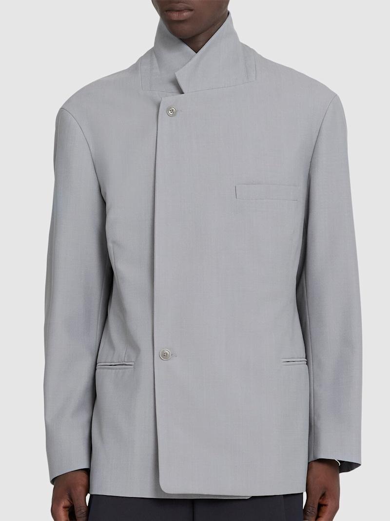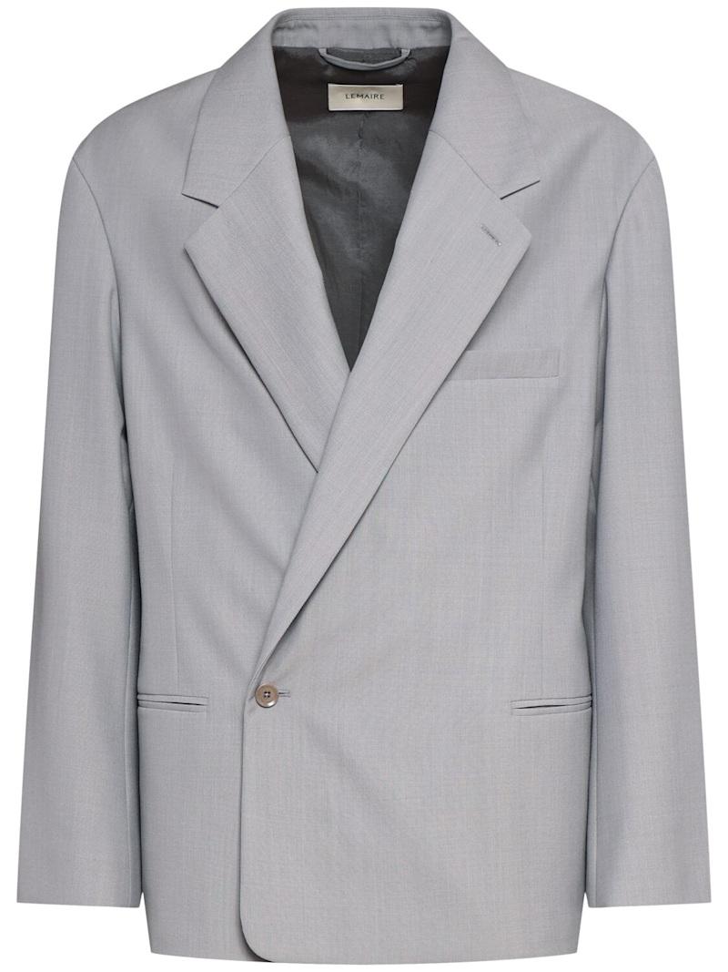 柔软双排扣夹克 - Blue Grey Melan - 男士 - Lemaire - 正面纽扣开合.