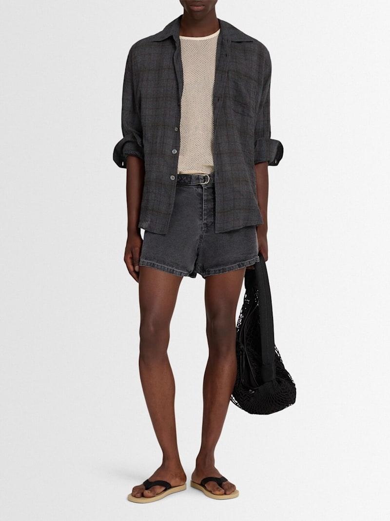 Oyster棉&亚麻短裤 - 黑色 - 男士 - Our Legacy - 正面纽扣开合.