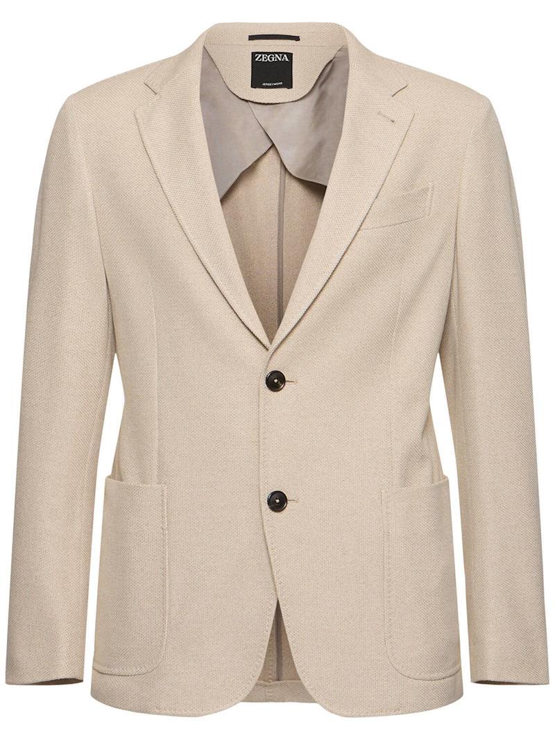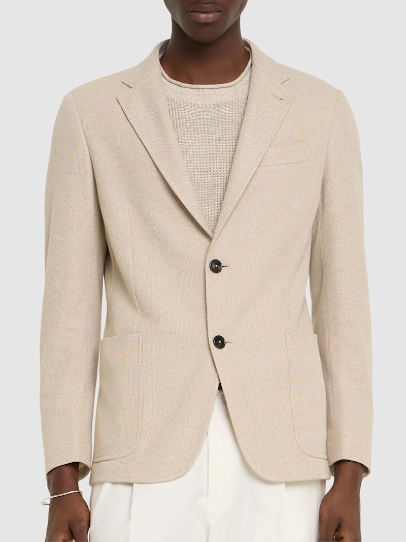 棉质平纹针织夹克 - Piedicavallo - 男士 - Zegna - 正面纽扣开合.