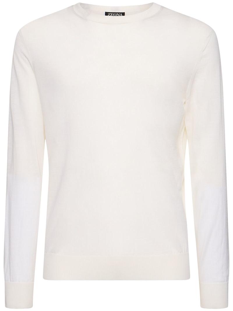 高性能羊毛圆领毛衣 - 白色 - 男士 - Zegna - 精细度:21 Gauge.