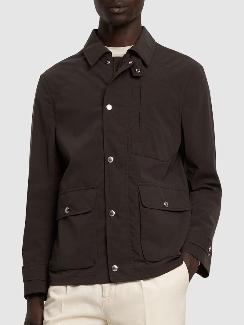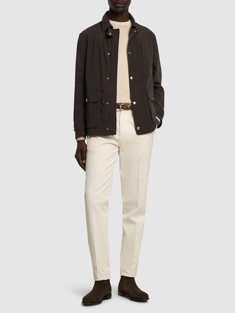 蜡涂层棉质夹克 - Testa Di Moro/P - 男士 - Brunello Cucinelli - 领口按扣束带.