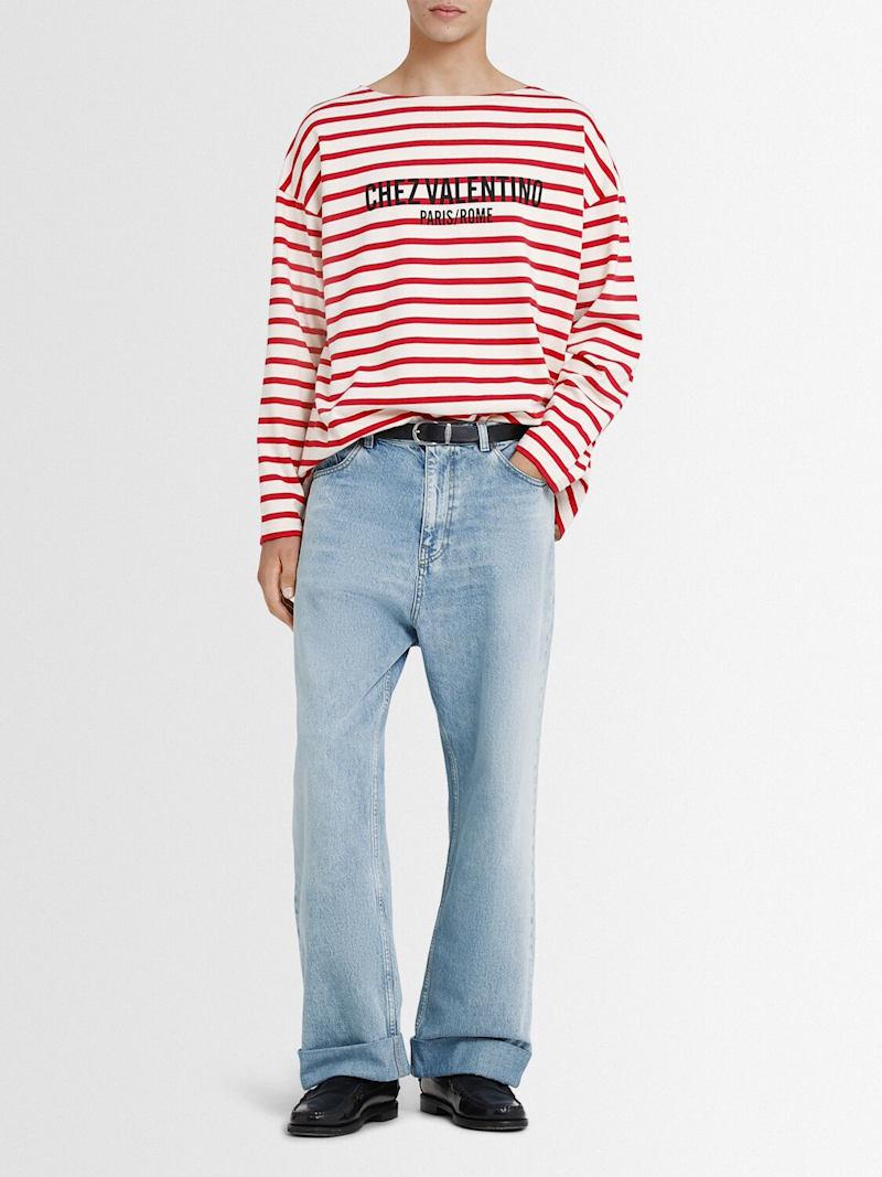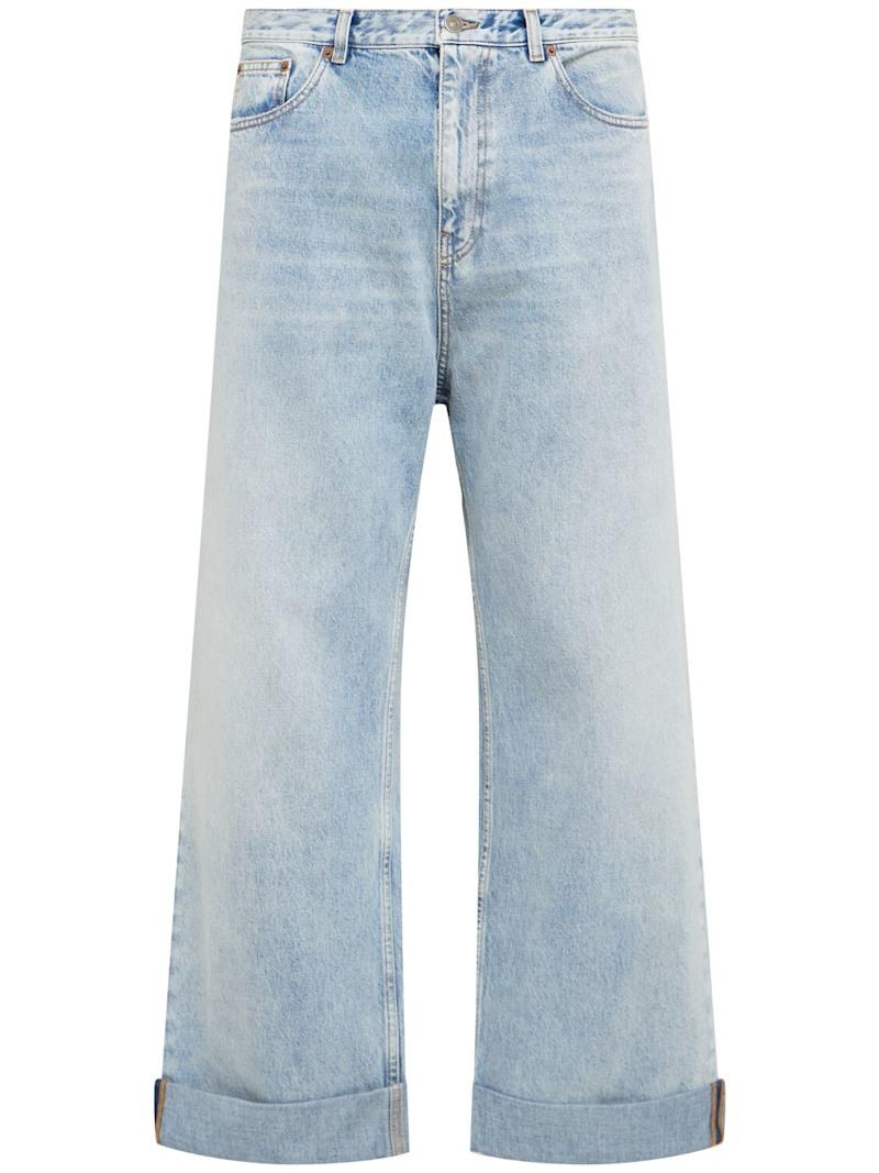 石洗牛仔裤 - 牛仔 - 男士 - Valentino - 正面纽扣和隐藏式拉链开合.