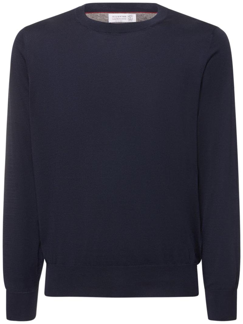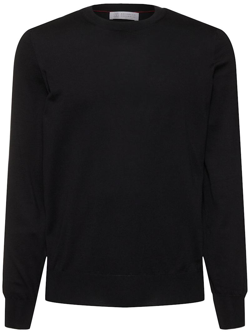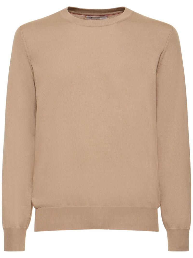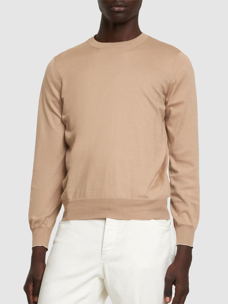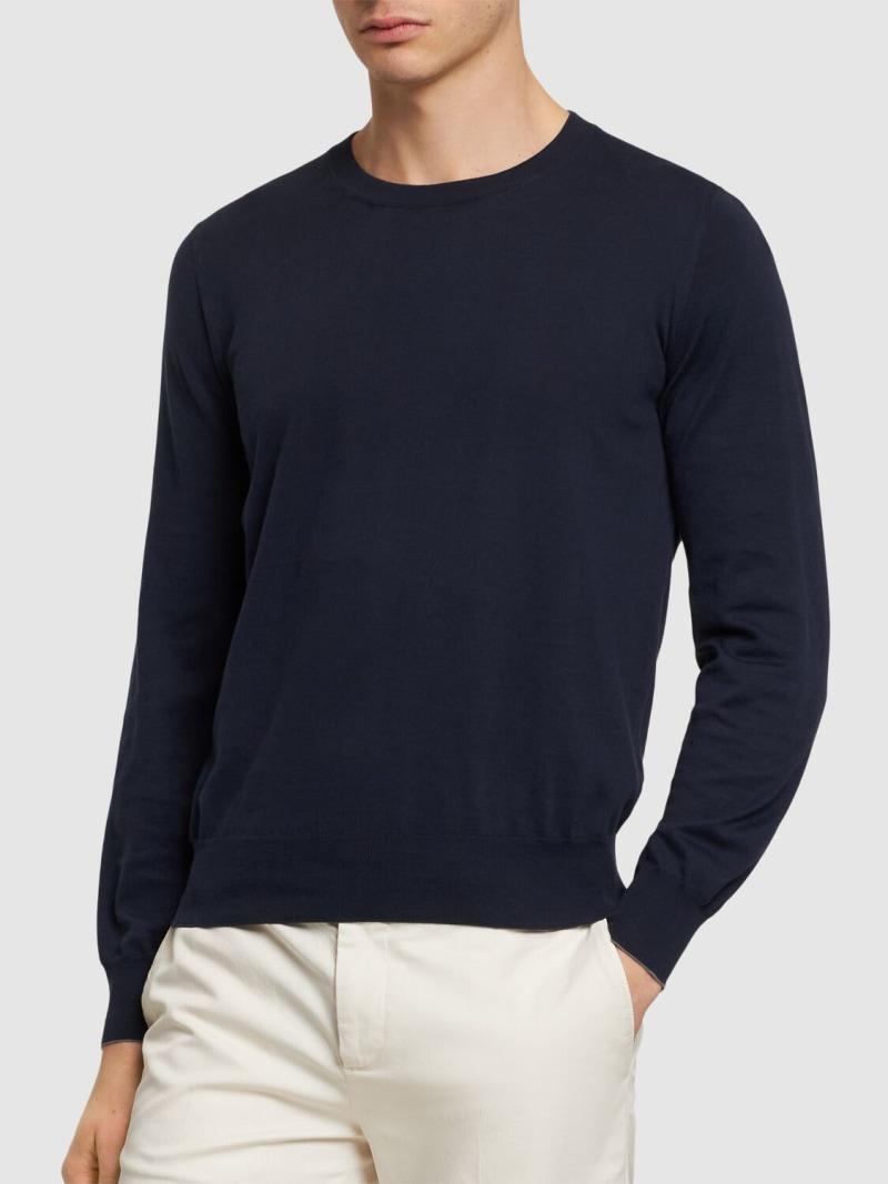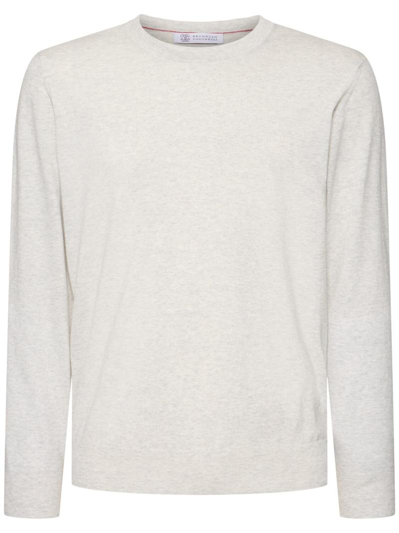 棉质圆领毛衣 - Creta - 男士 - Brunello Cucinelli - 罗纹领口、袖口和下摆.