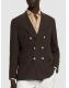 双排扣亚麻西服夹克 - 深棕色 - 男士 - Brunello Cucinelli - 正面纽扣开合.