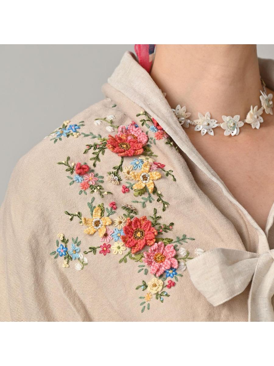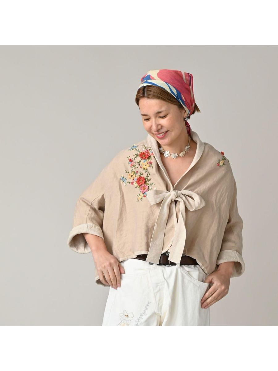 リネン重ね刺繍のボレロ
