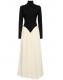 羊毛&薄纱长袖迷笛连衣裙 - 黑色/白色 - 女士 - Chloé - 缩褶薄纱裙幅
