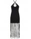 Elea流苏平纹针织超长连衣裙 - 黑色 - 女士 - Rotate - 可调节颈部系带.