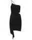 弹力针织单肩迷你连衣裙 - 黑色 - 女士 - Andreadamo - 不对称肩带衣边.