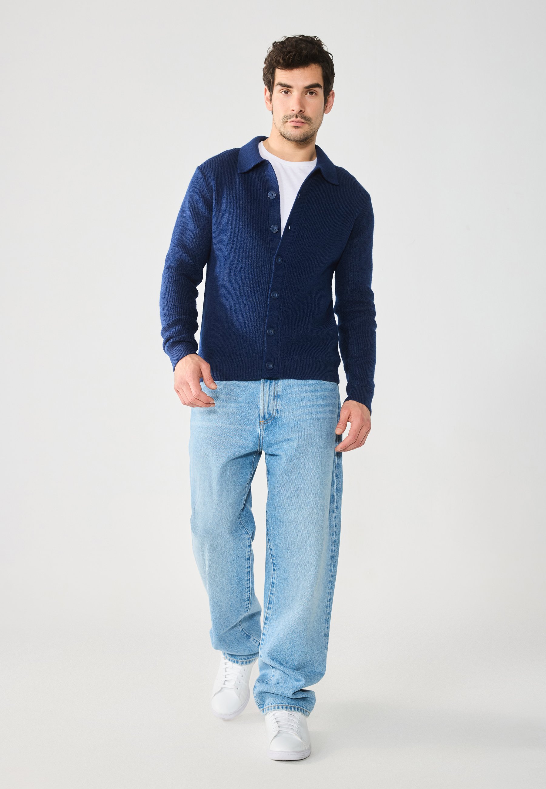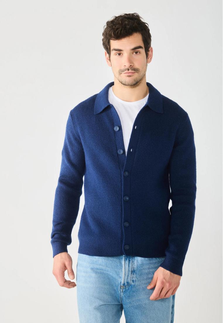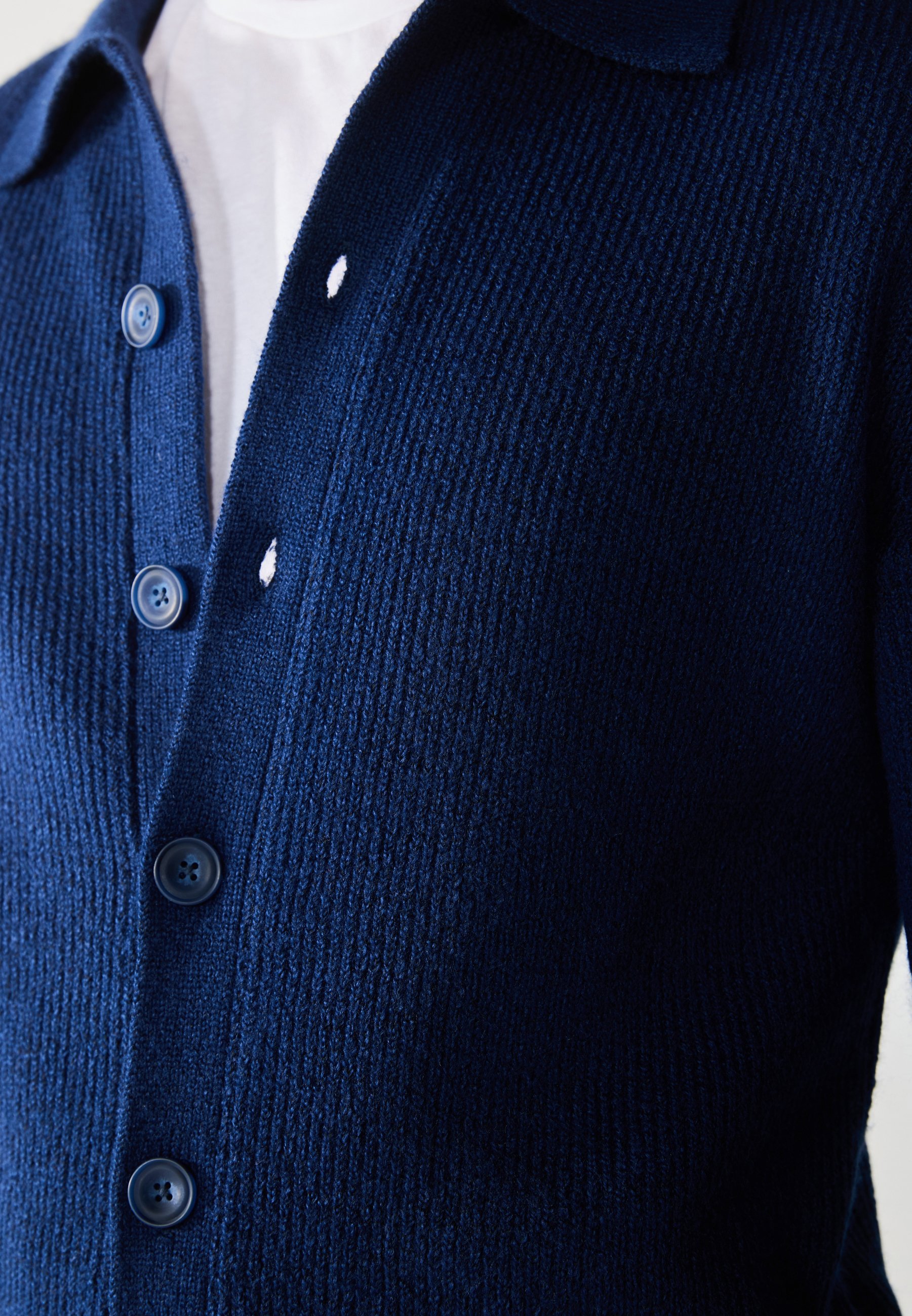 Neckline: V-neckCollar: Turn-down collarFastening: ButtonPattern: MarlDetails: Cable knit