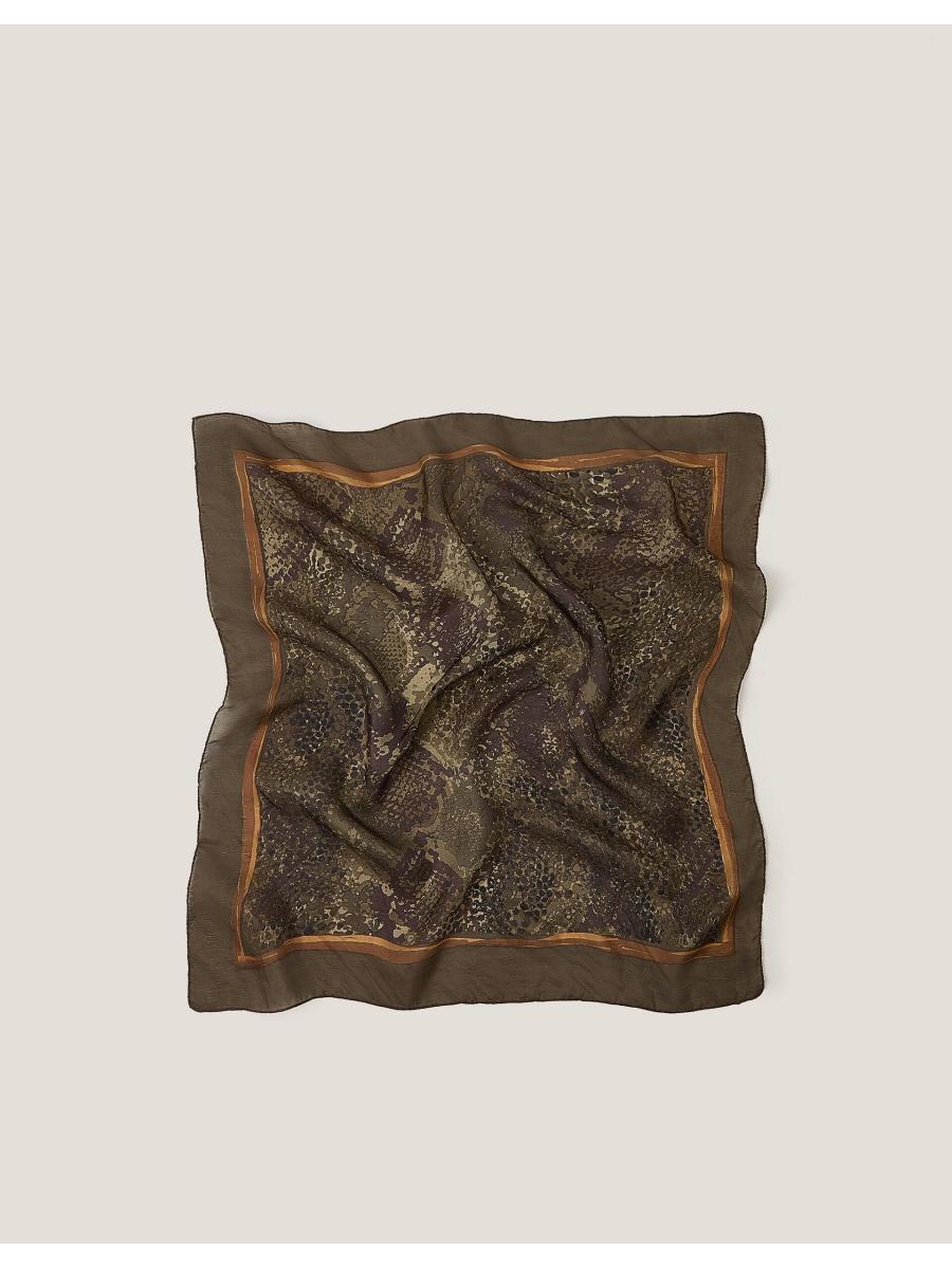 Description Sssssstylish. Designed in a super-chic snake skin print, this luxurious silk scarf is perfect for wrapping round your neck or styling into a headscarf. Details Fabric & Details Outer: Silk 100% H 60 cm x W 60 cm Hand wash Print Weight: 6.0 ID: 1000901676b-details__content-item"> Outer: Silk 100%