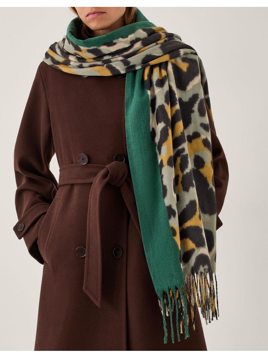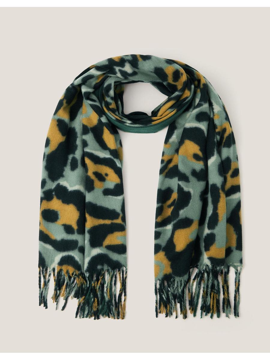 Purrr over Brrrr. A fun way of adding a pop of pattern into your winter looks, this scarf is cloaked in animal spots with classic tassel trims. Green