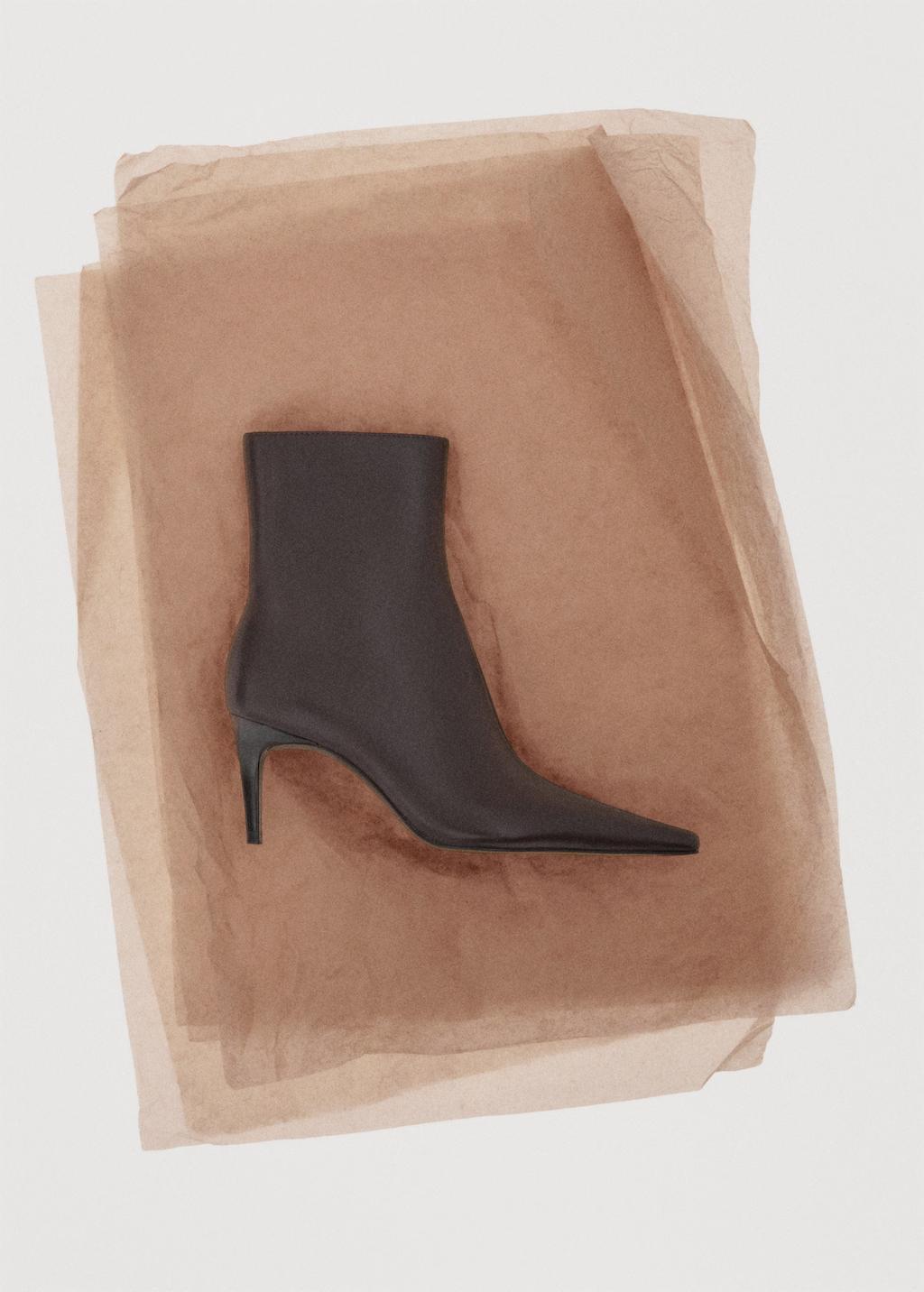 Piel caprino. Con punta. Tacón kitten. Cierre de cremallera lateral. El tacón mide 6,5 cm