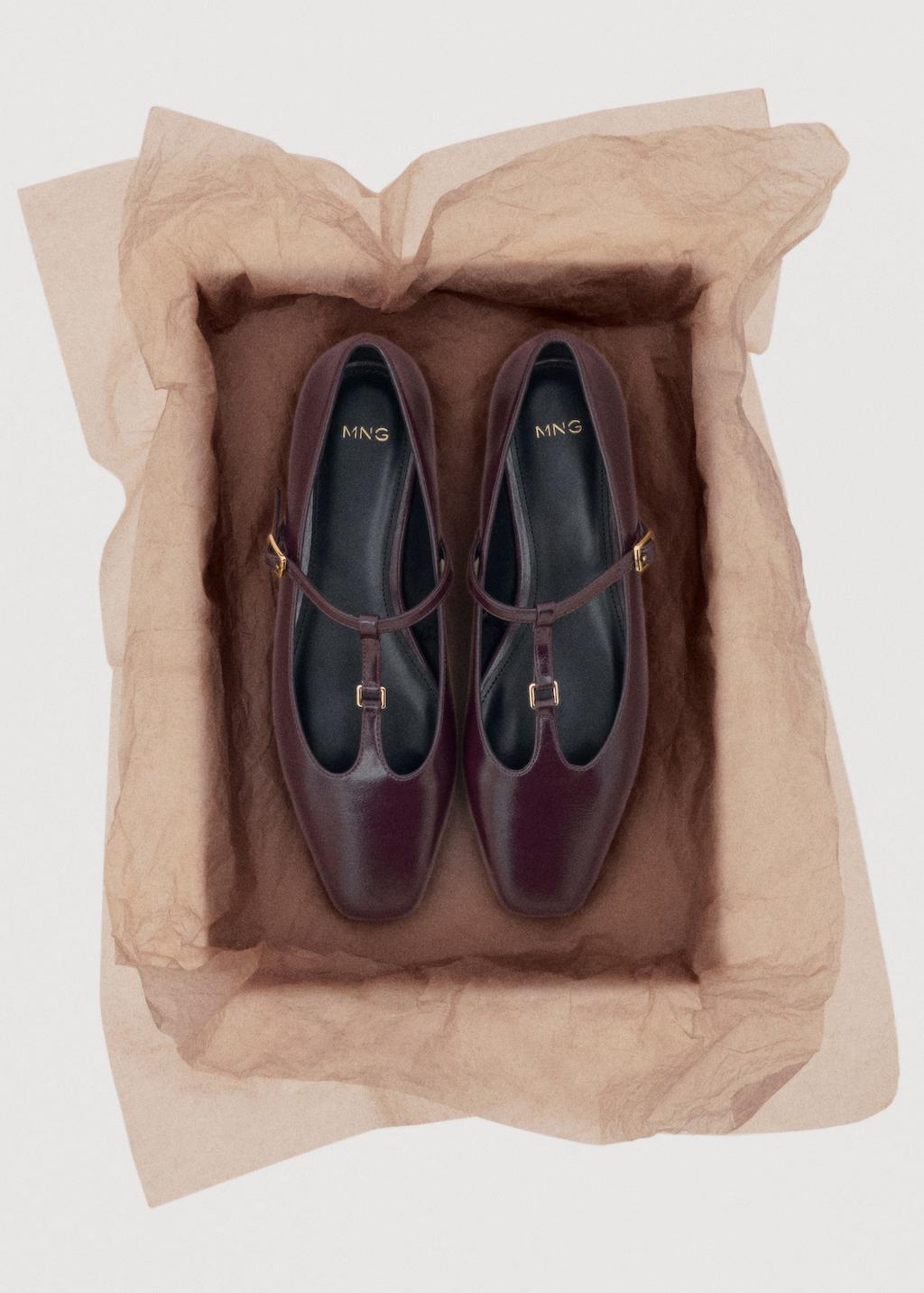 Efecto piel. Flat. Punta cuadrada. Tiras cruzadas. Cierre de hebilla