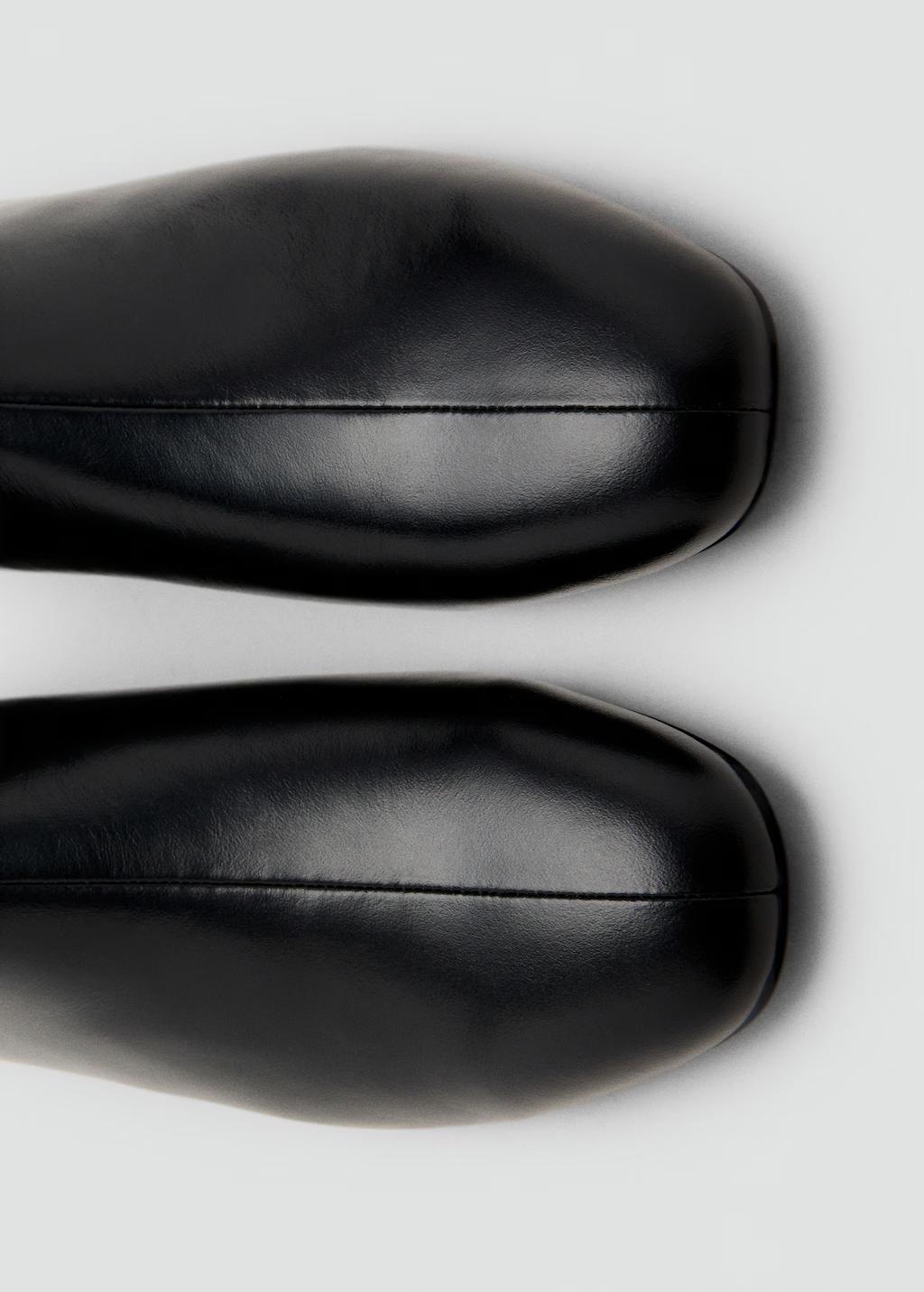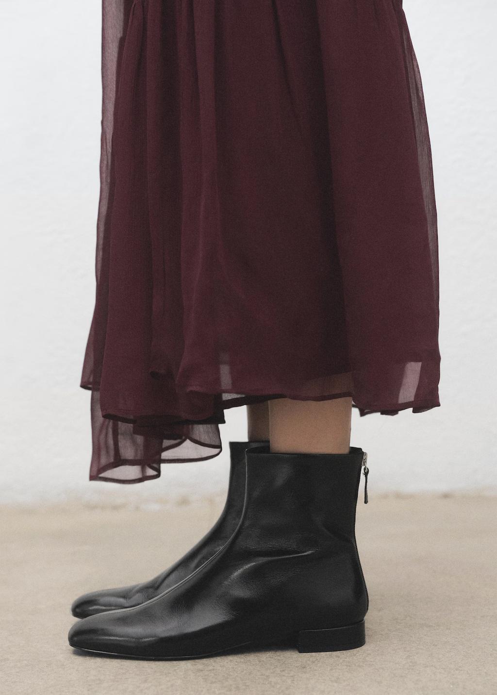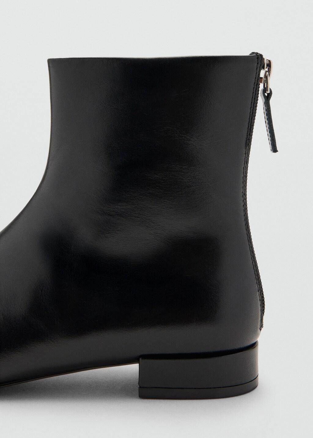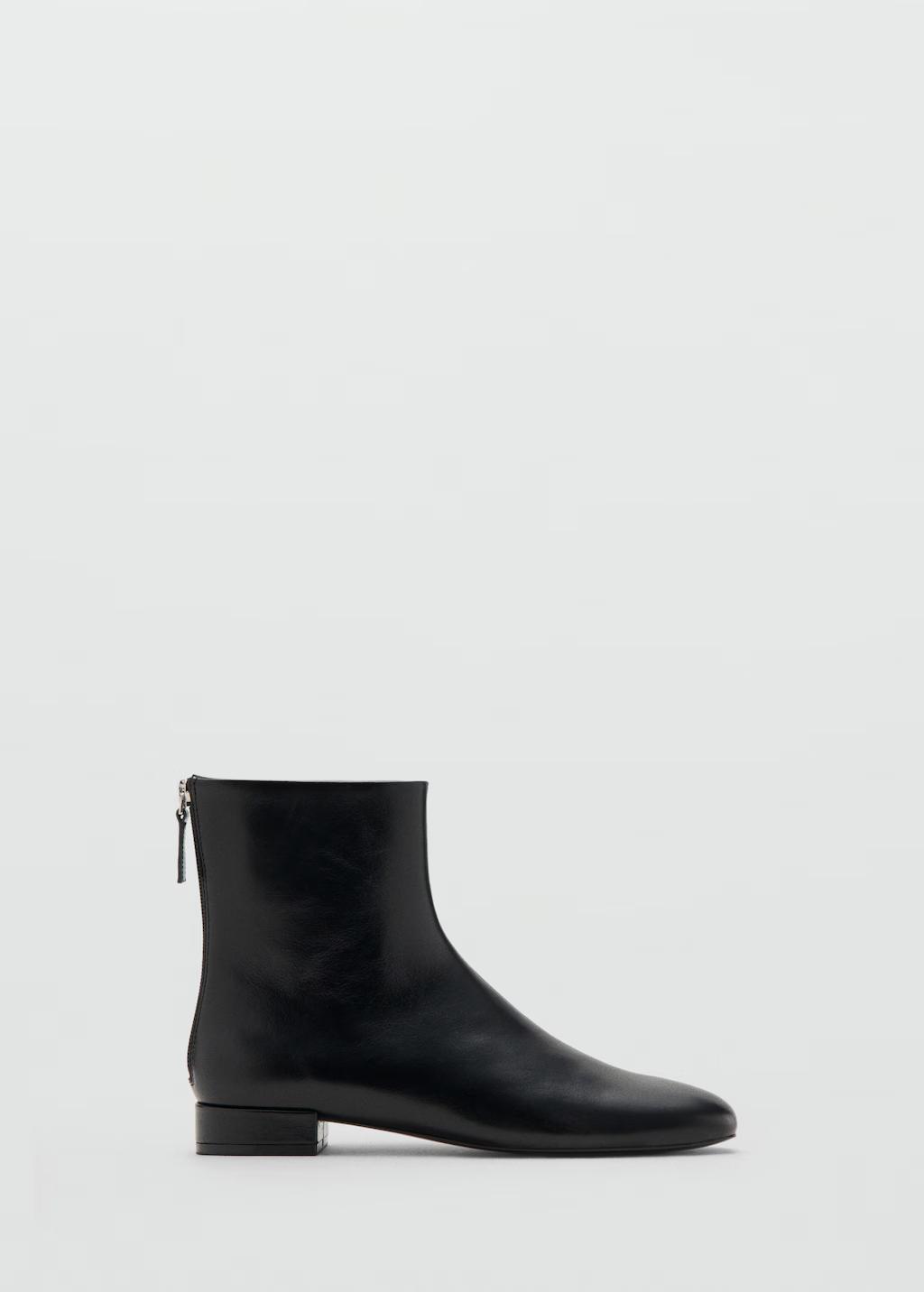 Piel bovino. Punta redonda. Cierre de cremallera en la parte posterior. Forro interior de piel