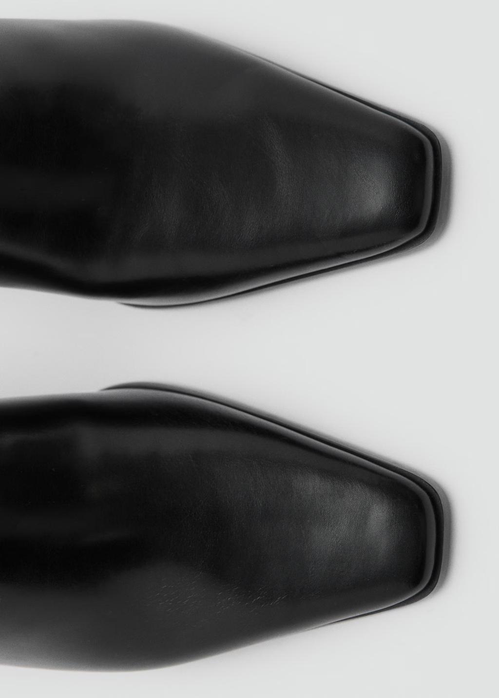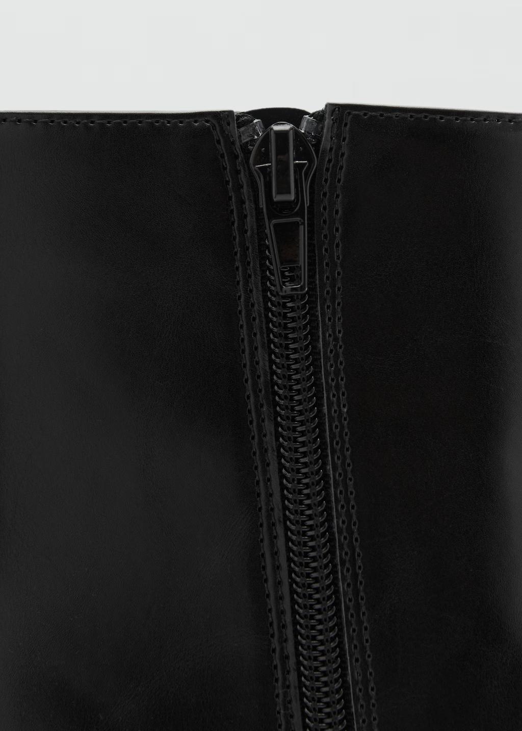 Efecto piel. Con punta. Tacón bloque. El tacón mide 8 cm. Cierre lateral de cremallera