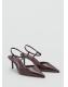 Efecto charol. Con punta. Pulsera en el tobillo. Tacón kitten. Cierre de hebilla en el tobillo. El tacón mide 7 cm