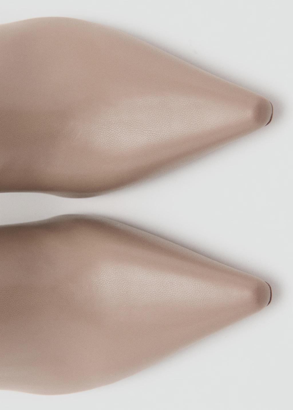 Caña baja. Con punta. Tacón bloque. Cierre de cremallera lateral. Forro interior. El tacón mide 8,5 cm