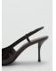 Diseño de charol. Diseño destalonado. Con punta. Anilla decorativa. Tacón de aguja. El tacón mide 8 cm