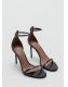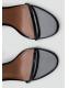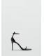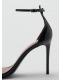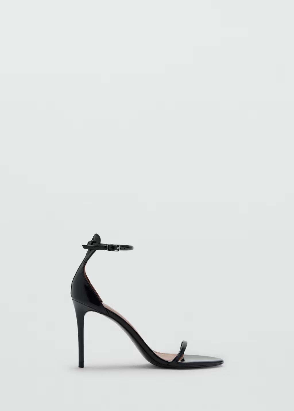 Efecto charol. Diseño de tira. Puntera abierta. Tacón de aguja. Cierre de tira tobillera con hebilla metálica. El tacón mide 9,5 cm