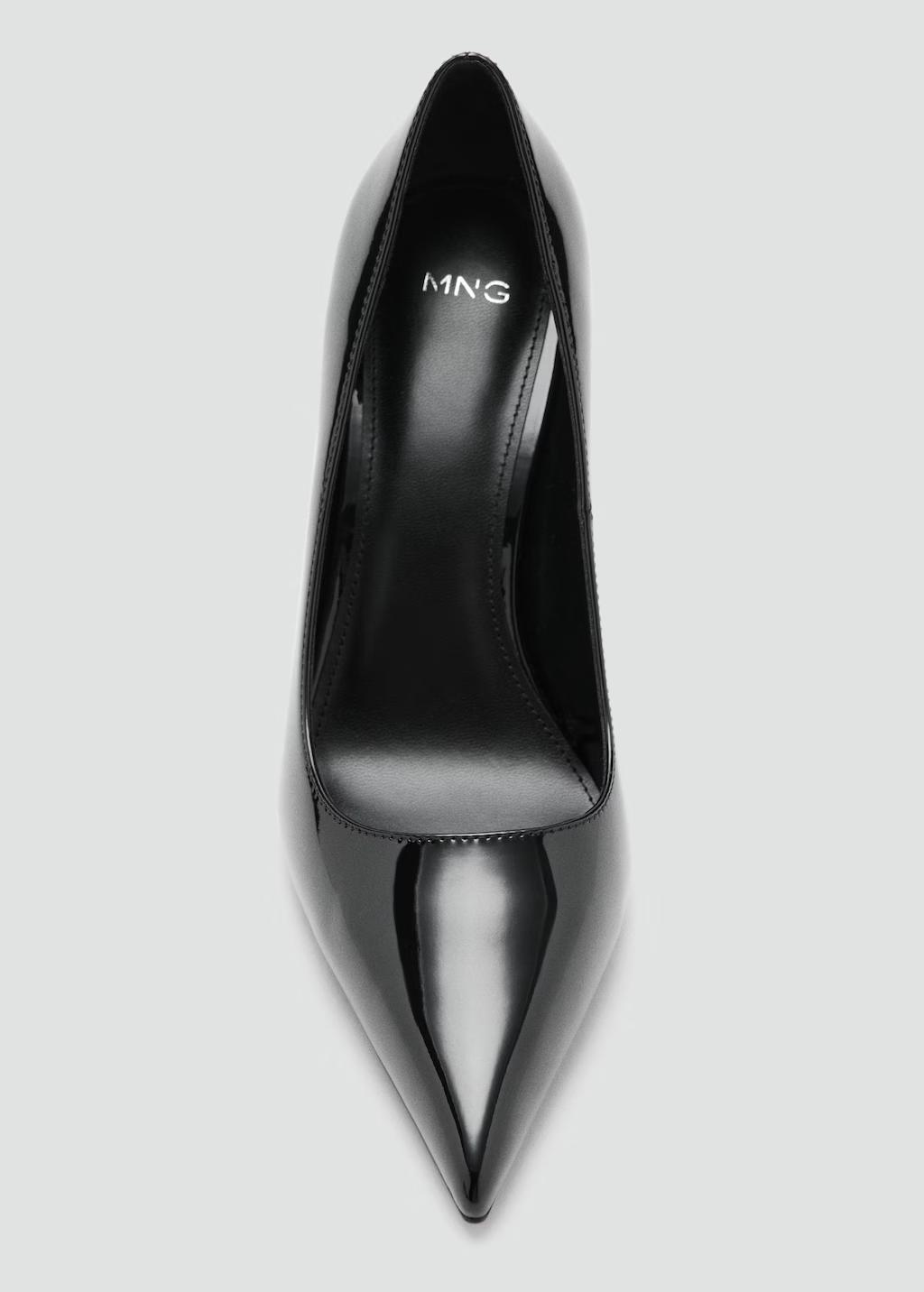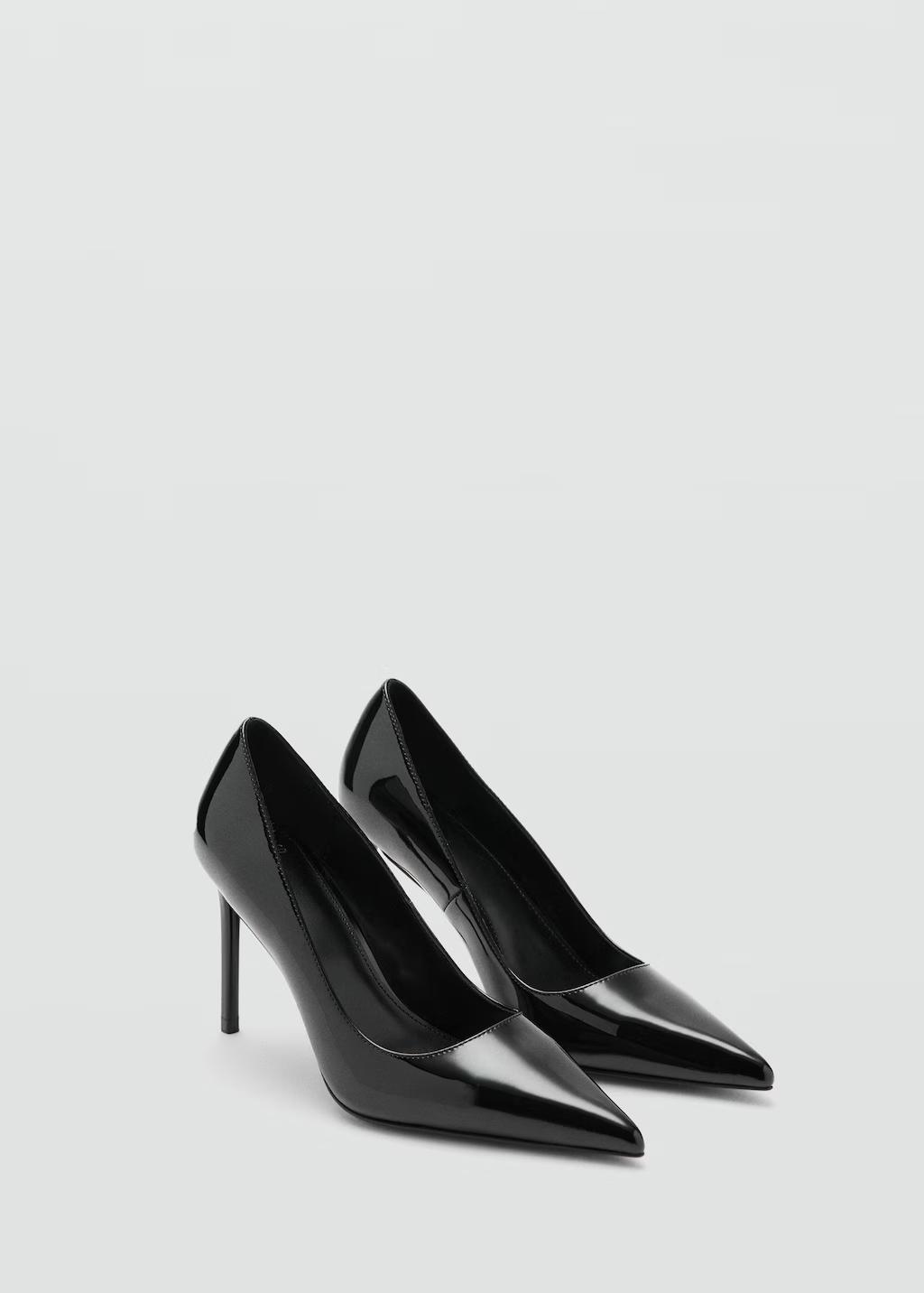 Efecto charol. Con punta. Tacón de aguja. Sin cierre. El tacón mide 10 cm