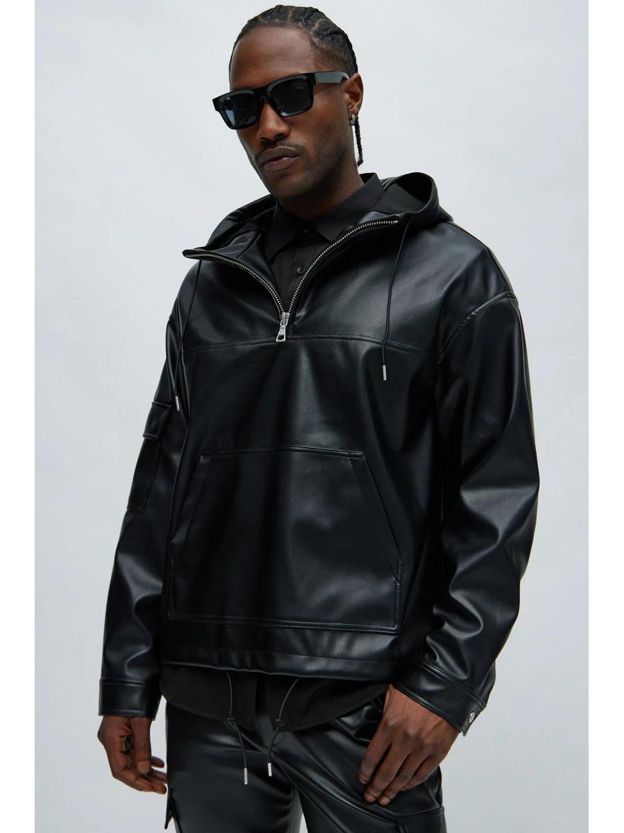 Royce Faux Leather Pullover Jacket - Black | Fashion Nova
