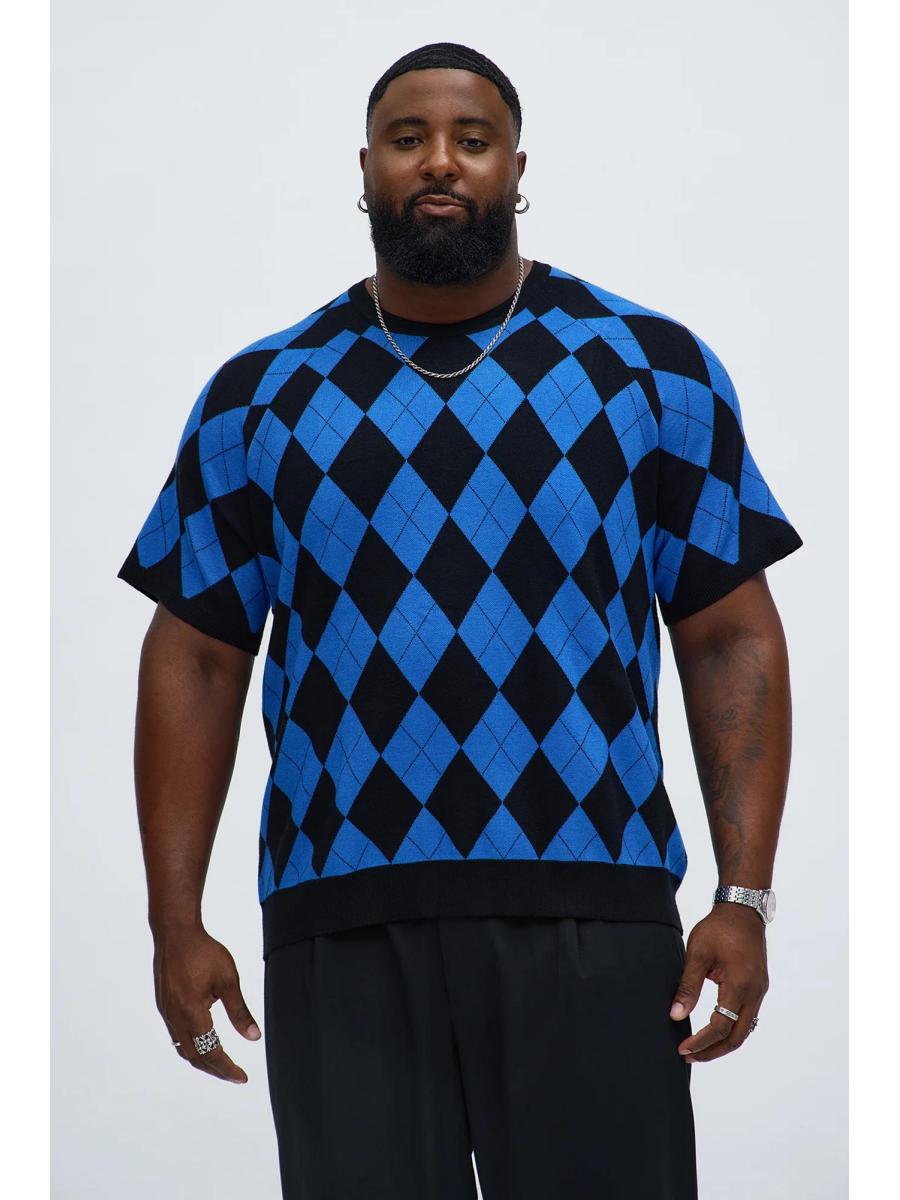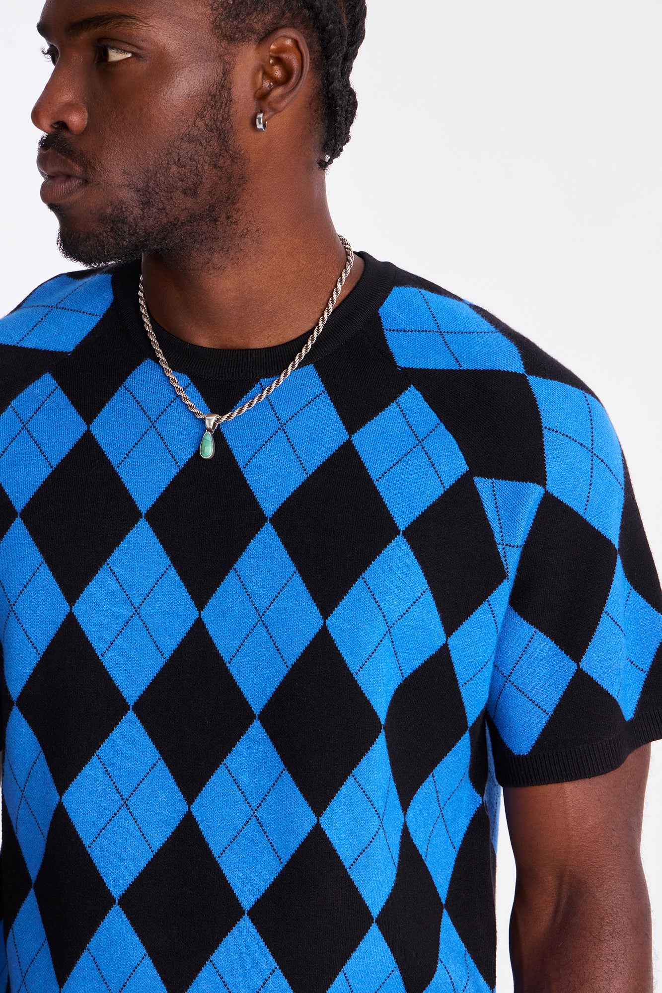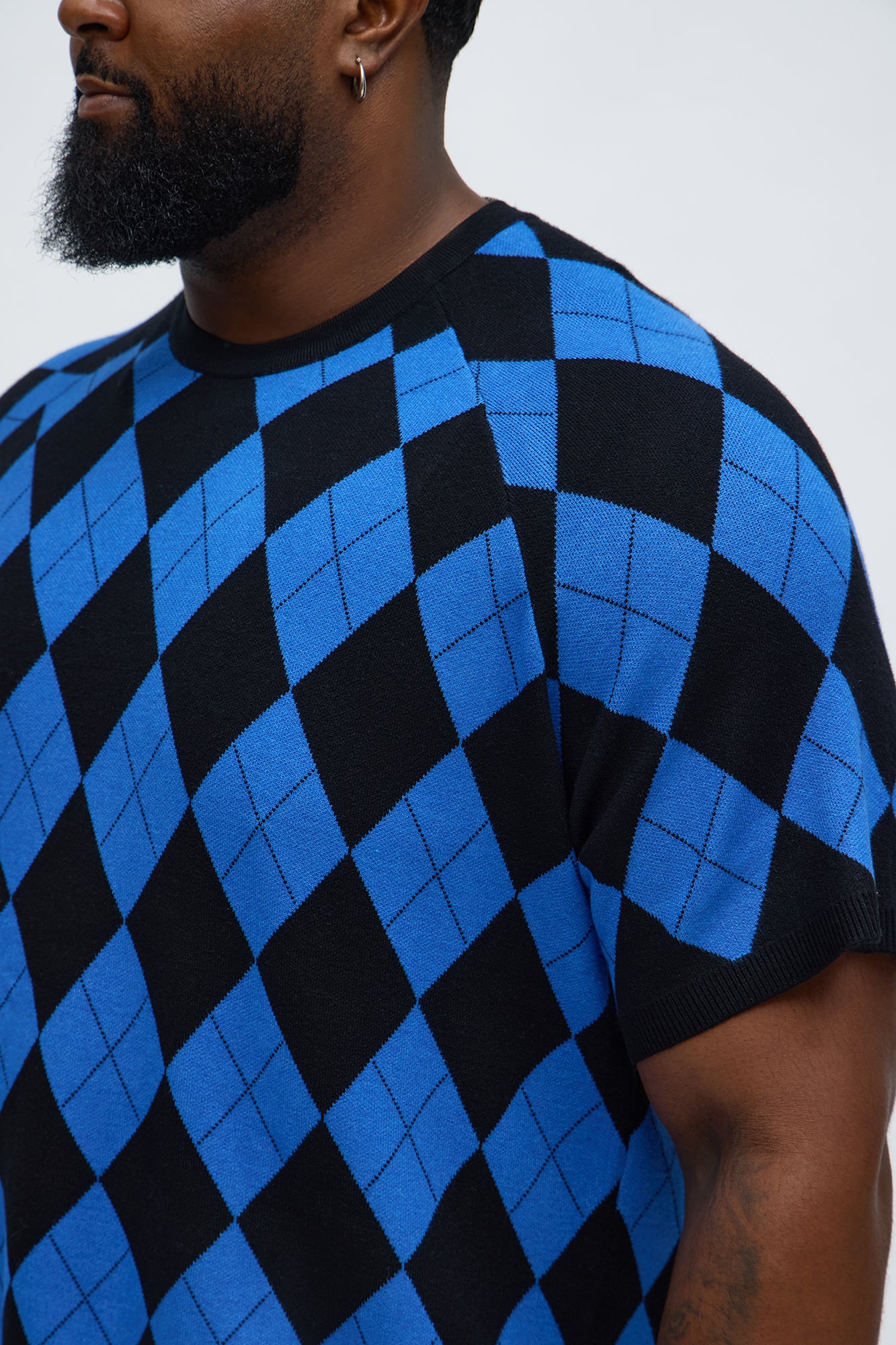 Seymour Argyle Knit Tee - Blue/combo | Fashion Nova