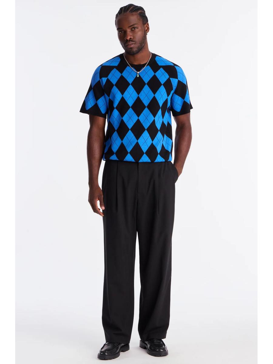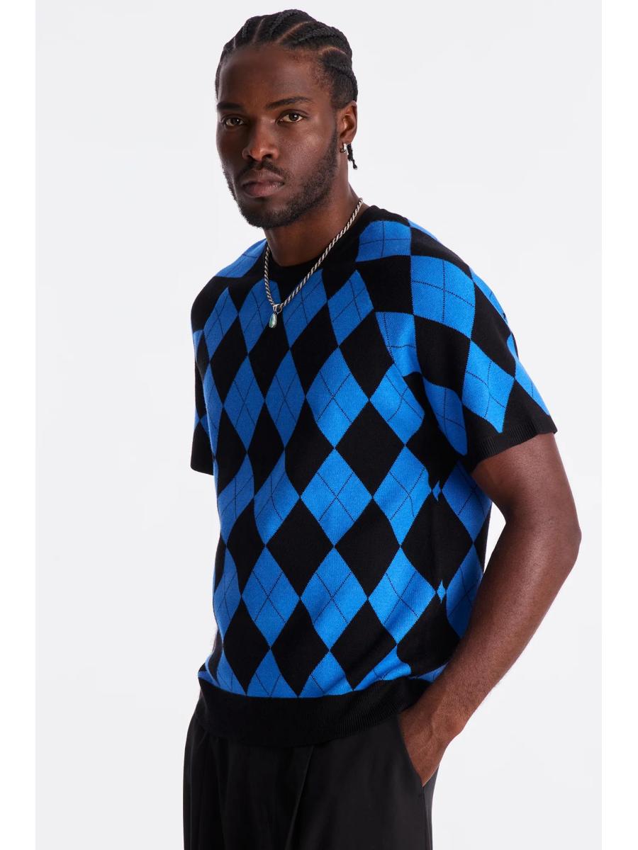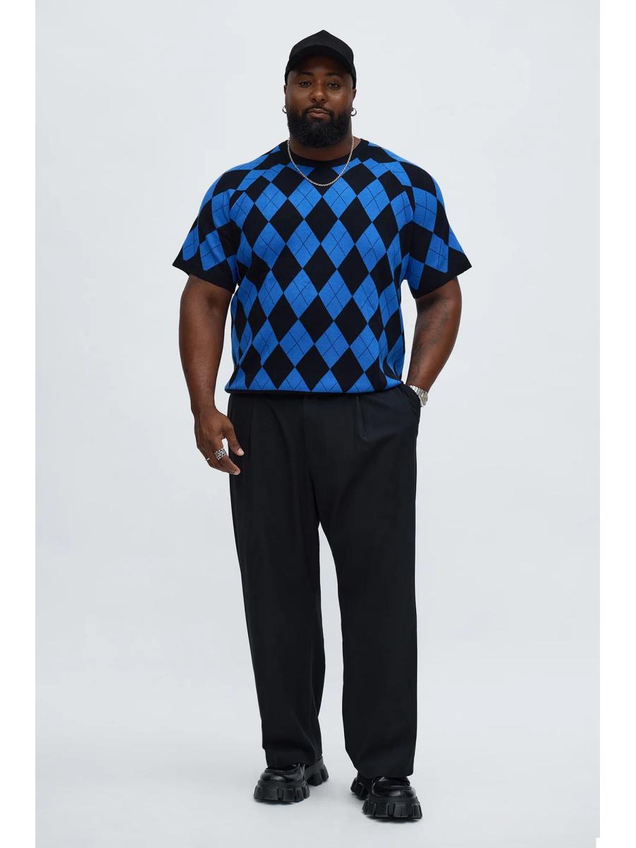 Seymour Argyle Knit Tee - Blue/combo | Fashion Nova