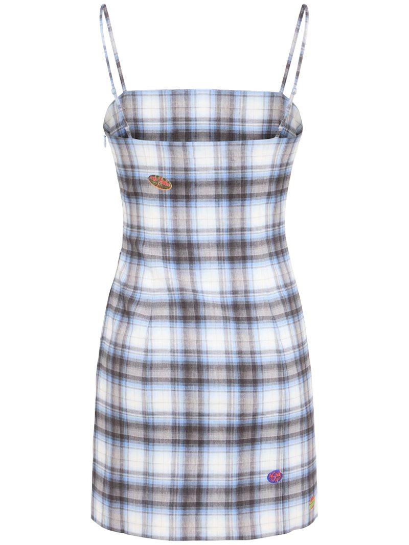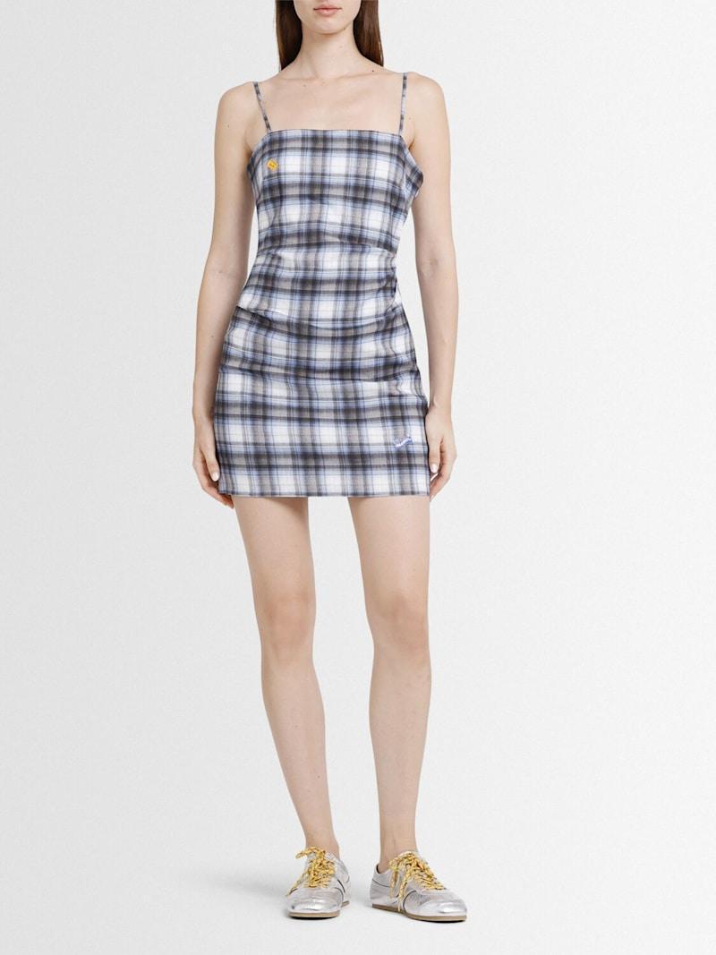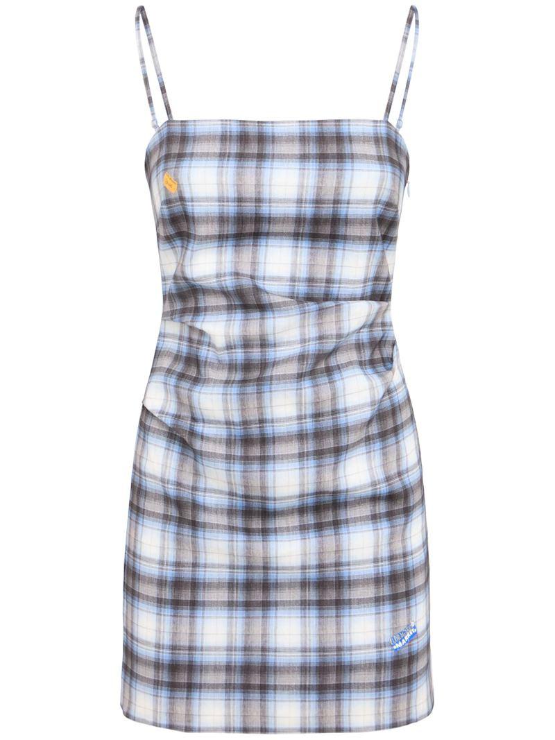 Dua 格纹亚麻混纺迷你连衣裙 - 蓝色/黑色 - 女士 - Acne Studios - 可调节细肩带.