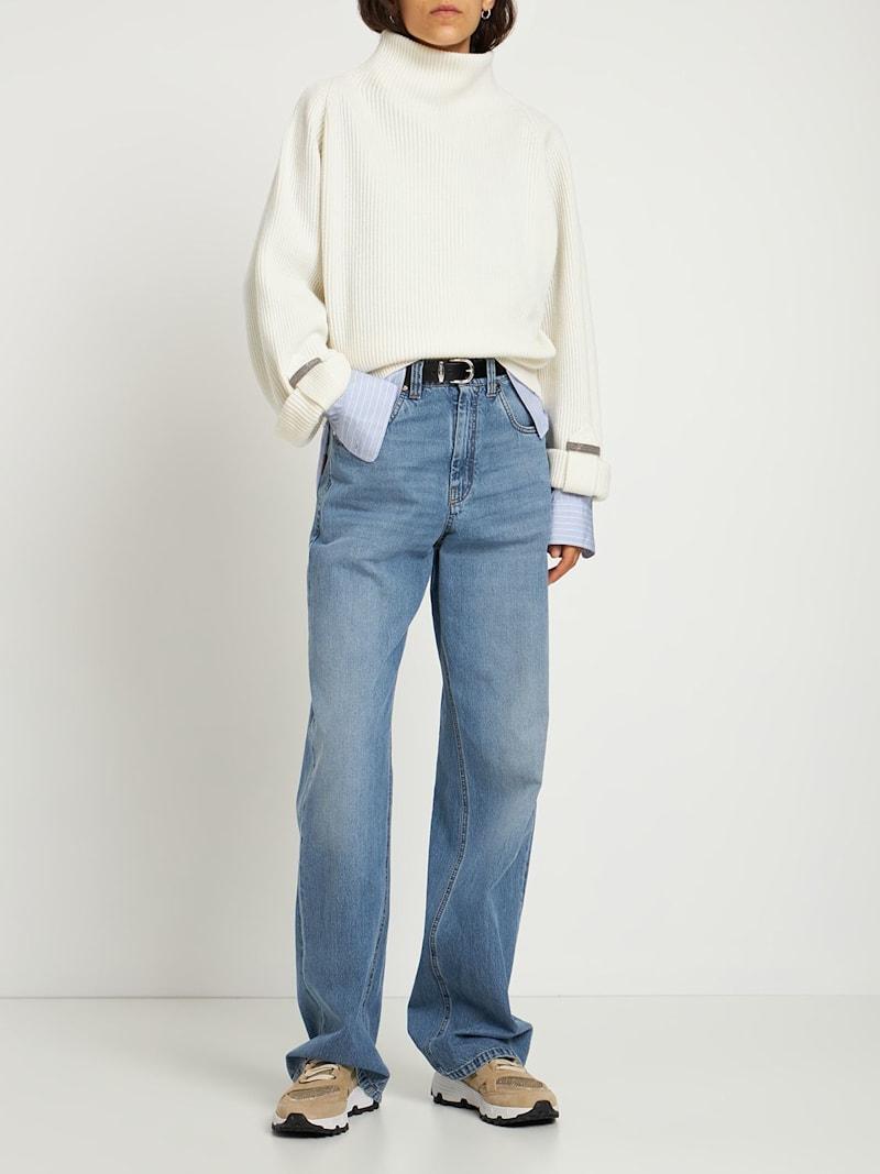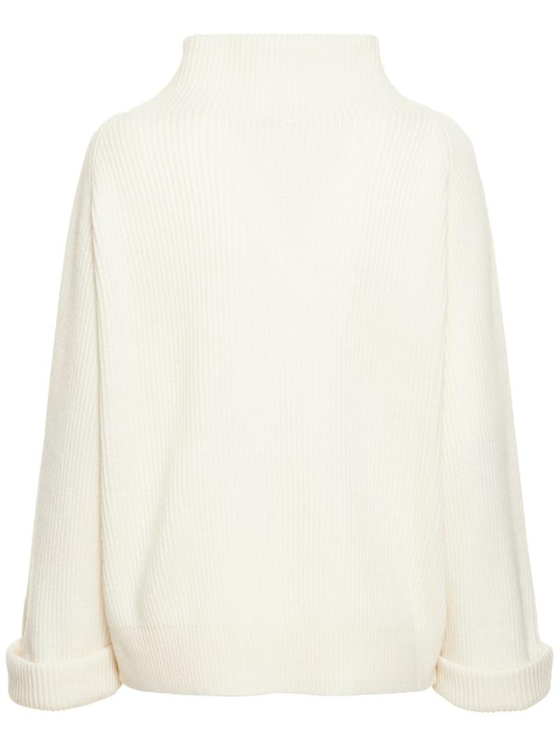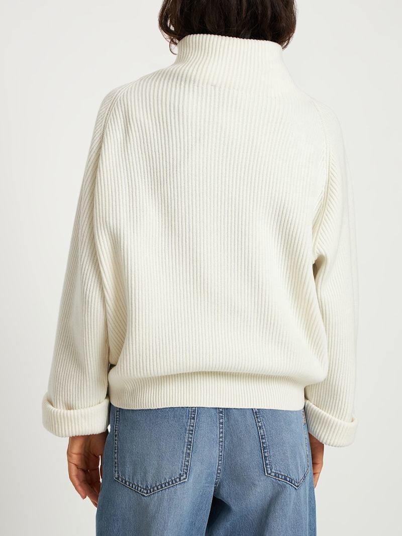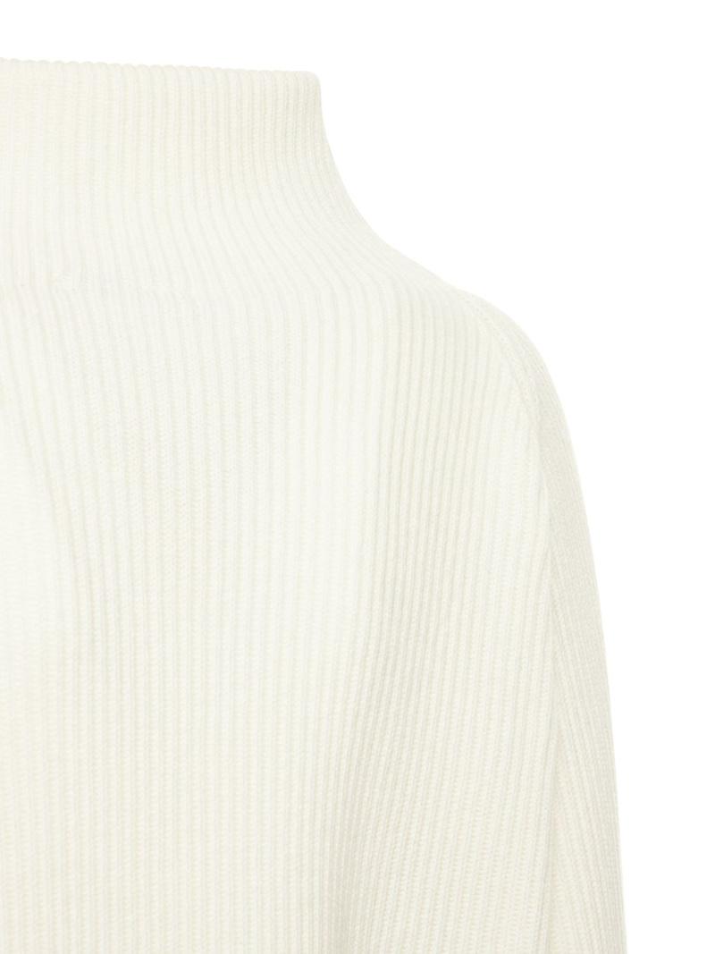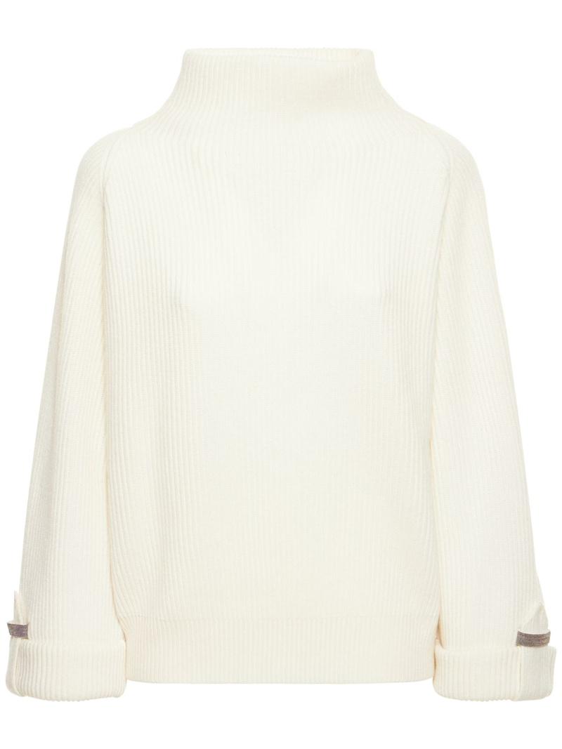 罗纹针织羊绒高领毛衣 - 白色 - 女士 - Brunello Cucinelli - 罗纹领口、袖口和下摆.