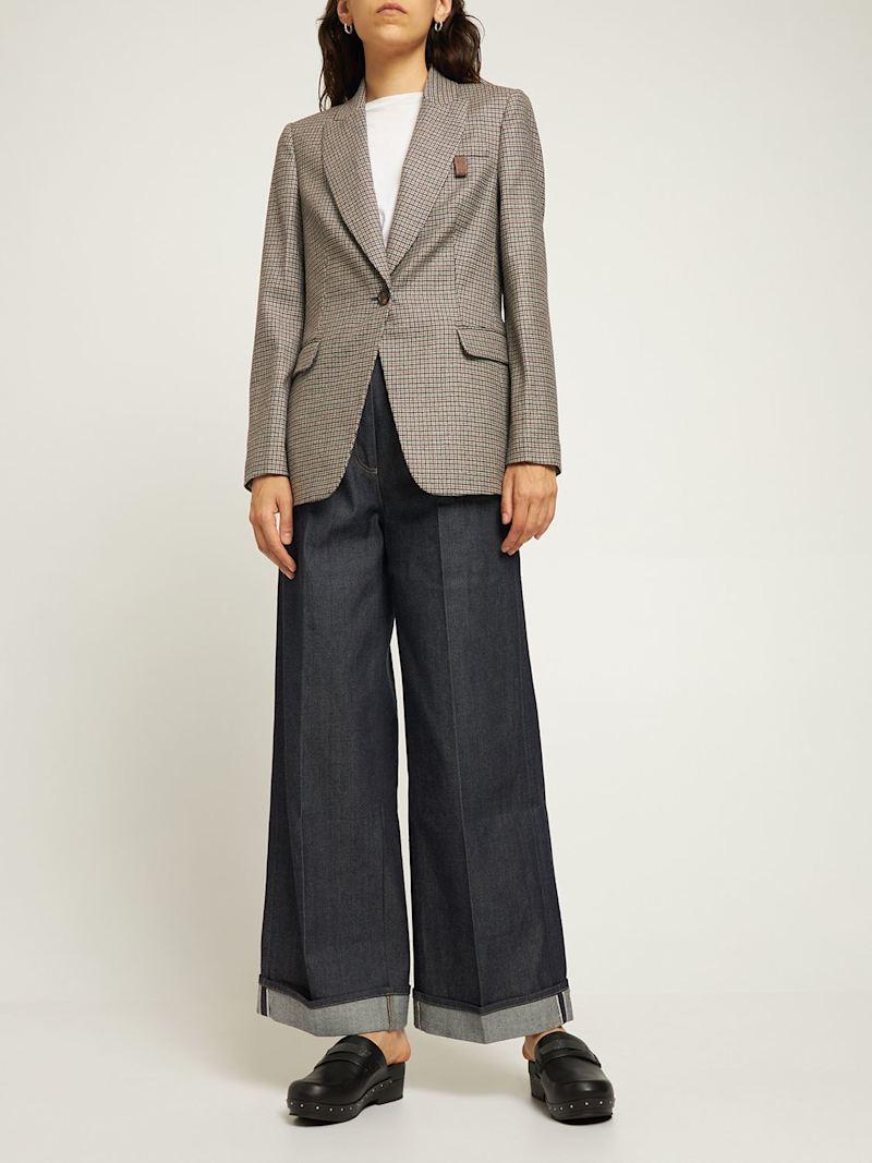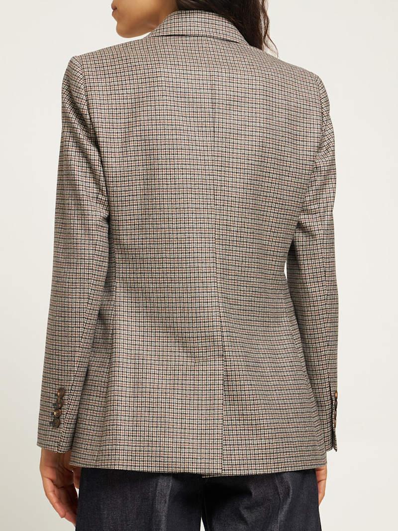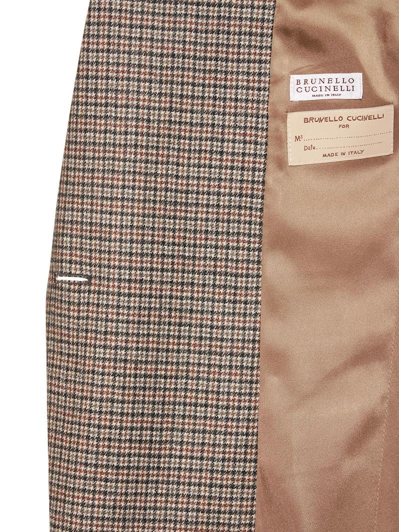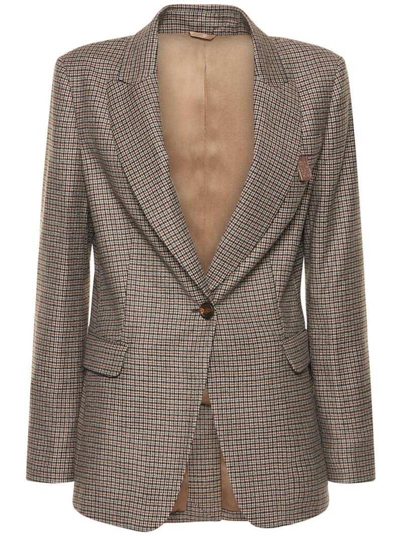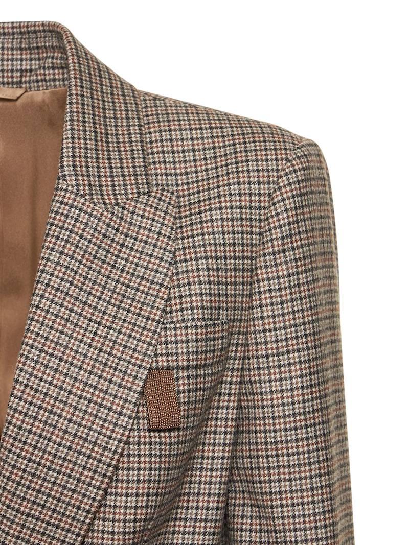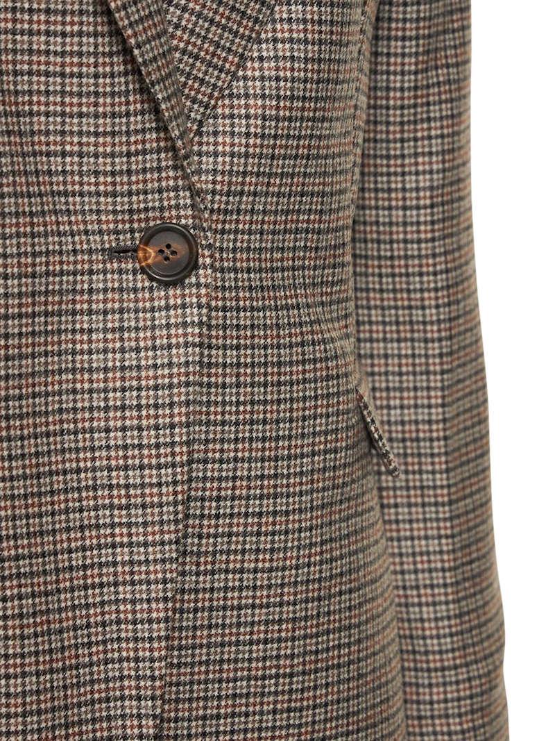 羊毛&羊绒格纹西服夹克 - 棕色 - 女士 - Brunello Cucinelli - 正面纽扣开合.